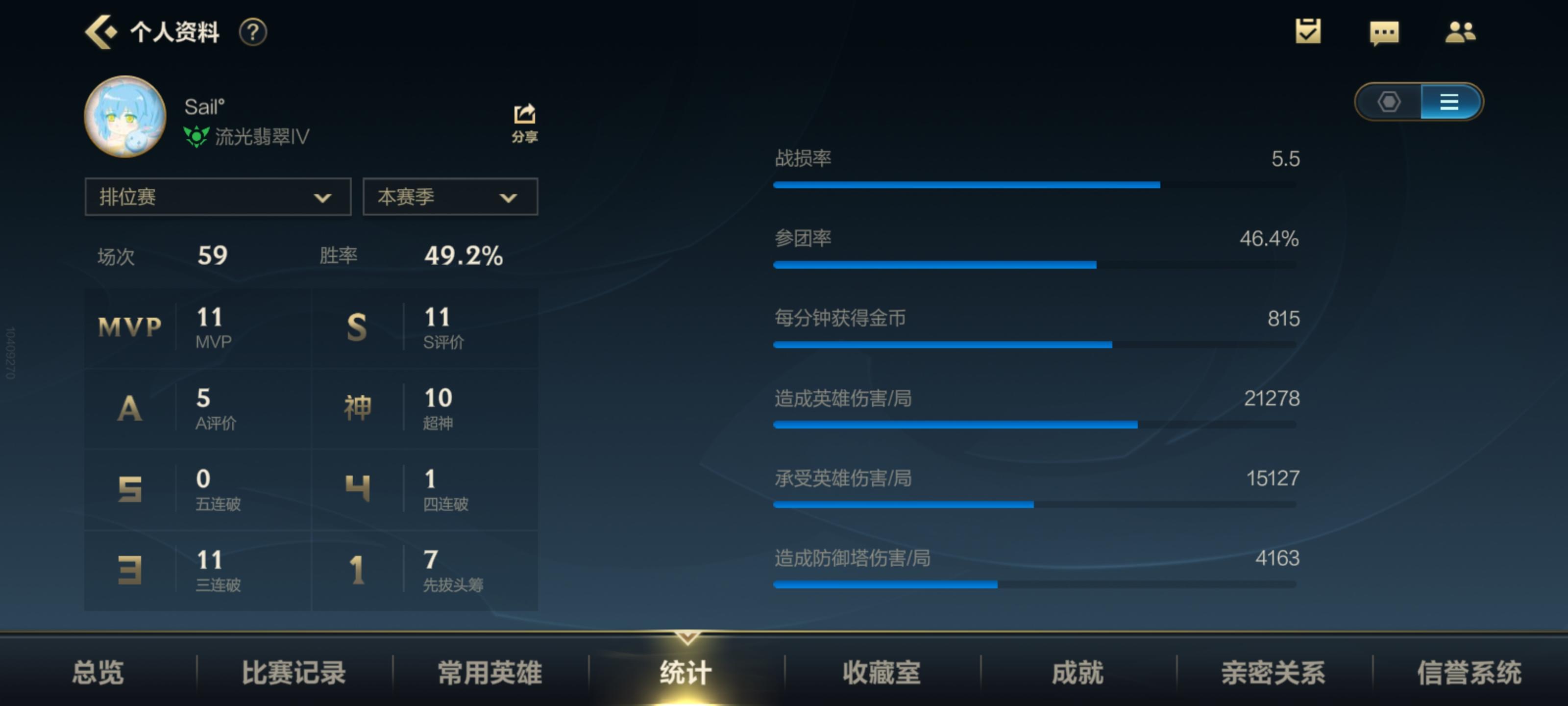 段位无要求,心态好不摆烂就行,KDA>3,参团率>50,伤害>3w,承伤>2w(不是必须全部到,只是大概参考)(看我数据就知道这不算很高,我也看过不少人,基本正常玩的有点水平的都行)