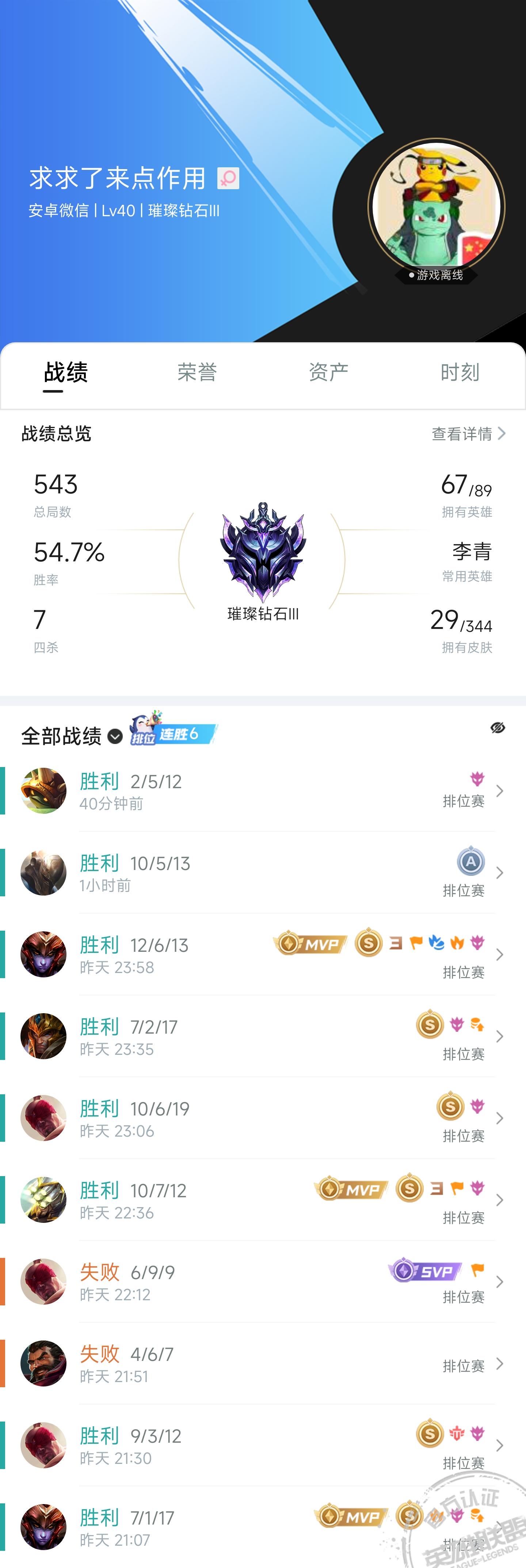 本人战绩公开,数据大多数是单排,剩下是双排,不存在胜率队,就算以后有五黑也不会追求胜率,只要都认真玩就行。
