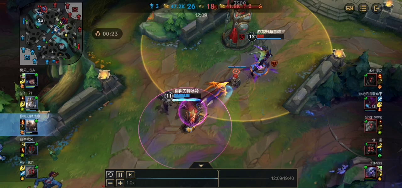 手游钻石啊,不知道为什么钻石这个分段就有很多自信的队友说自己包c。抢位置,就是也不是说抢,大家都让着他这个永恩,他要玩中路,但是他分配到的路是上单位啊,我们的中路同学呢做出让步。去玩辅助了,然后呢我作为一个辅助呢,勉强的去做了个上单位,我们都让着这个。钻石永恩同学。但是后面发现这个永恩有点不简单,前期处理的还好,但是后面就有点。不对味对面的中单法师安妮。就是追着我们家的永恩屁股后面捡人头的状态。