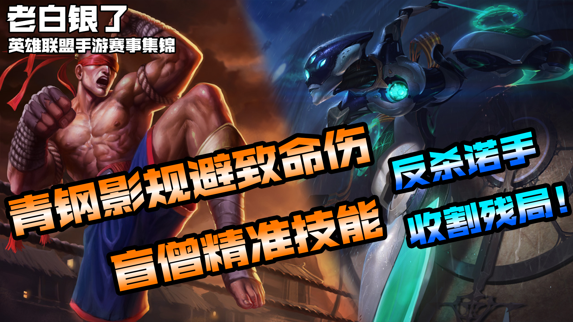 英雄联盟手游赛事集锦44:青钢影规避致命伤反杀诺手,盲僧精准技能收割残局!