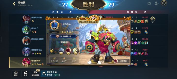 可真是看的起我呢,怎么不直接把大师的拍给我?生怕我上分了是吧,翡翠三直接排钻一的还是国服的,真有你的,整局就我一个翡翠的你觉得合理吗?