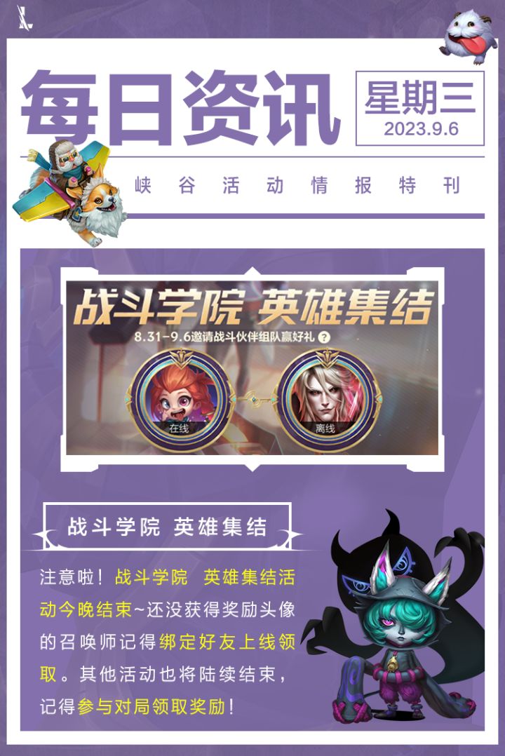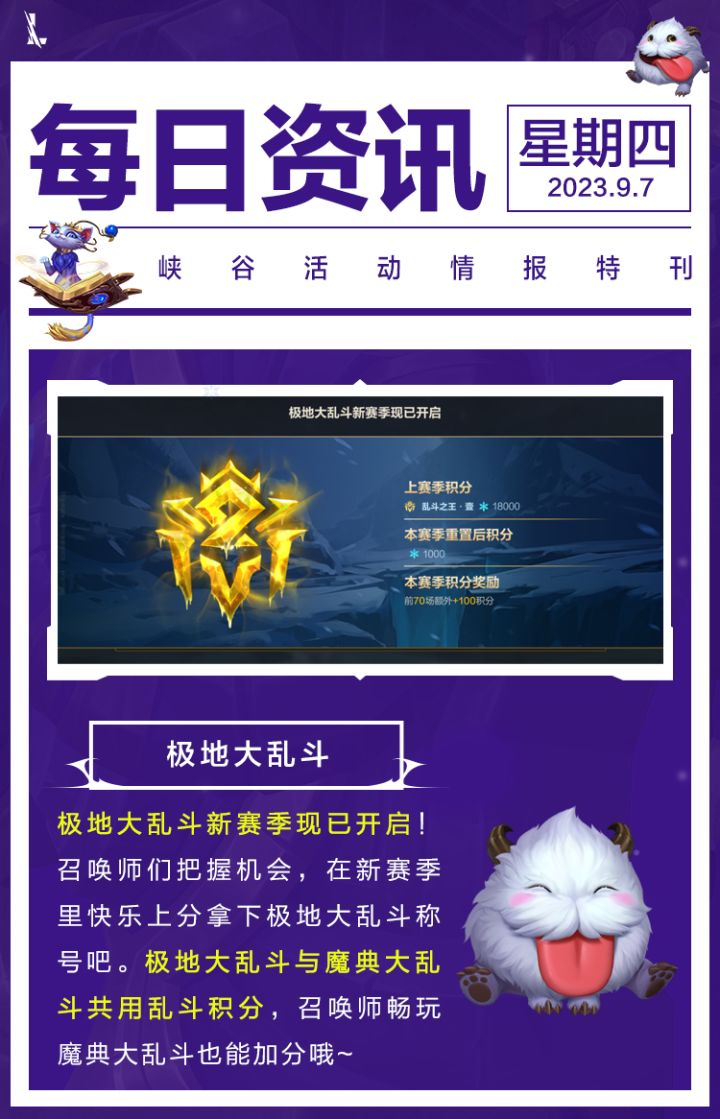 新峡谷宝典、魔典大乱斗、无限火力...9月的第一天,峡谷里就已经处处充满惊喜!隆哥已经为大家准备好了最全最细的活动清单,当然召唤师也可以直接进入游戏,先来一把刺激的娱乐模式对局~全新峡谷宝典全新的峡谷宝典已经上线,如果想获得美味可口的烘焙童谣 悠米,就在已经任务减负的新宝典上冲击宝典等级吧!隆哥小Tips:除任务减负外,本期宝典还对51~74级的奖励进行优化。在该等级阶段,召唤师能获得额外的