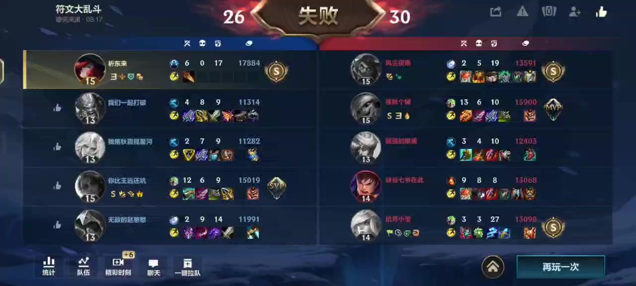 打了这么多把,这么抽象还是第一次[表情_捂脸哭],经济是全场最高的,装备是不用出的,伤害是全队第二的,我是坑人的,队友是抽象的,最后是含笑九泉的。可惜这么好的装备居然没人出,最好别让我死了,不然你们会知道什么叫王者归来[表情_斜眼笑]