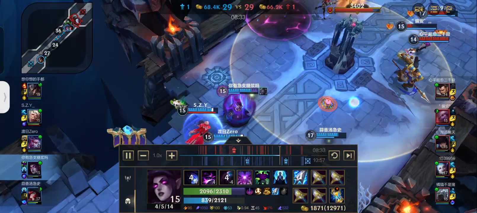 #英雄联盟手游 好牌好装备,挂W拉满Q,中期后期都是满血秒。 后期不吃狂妄,攻击力489。