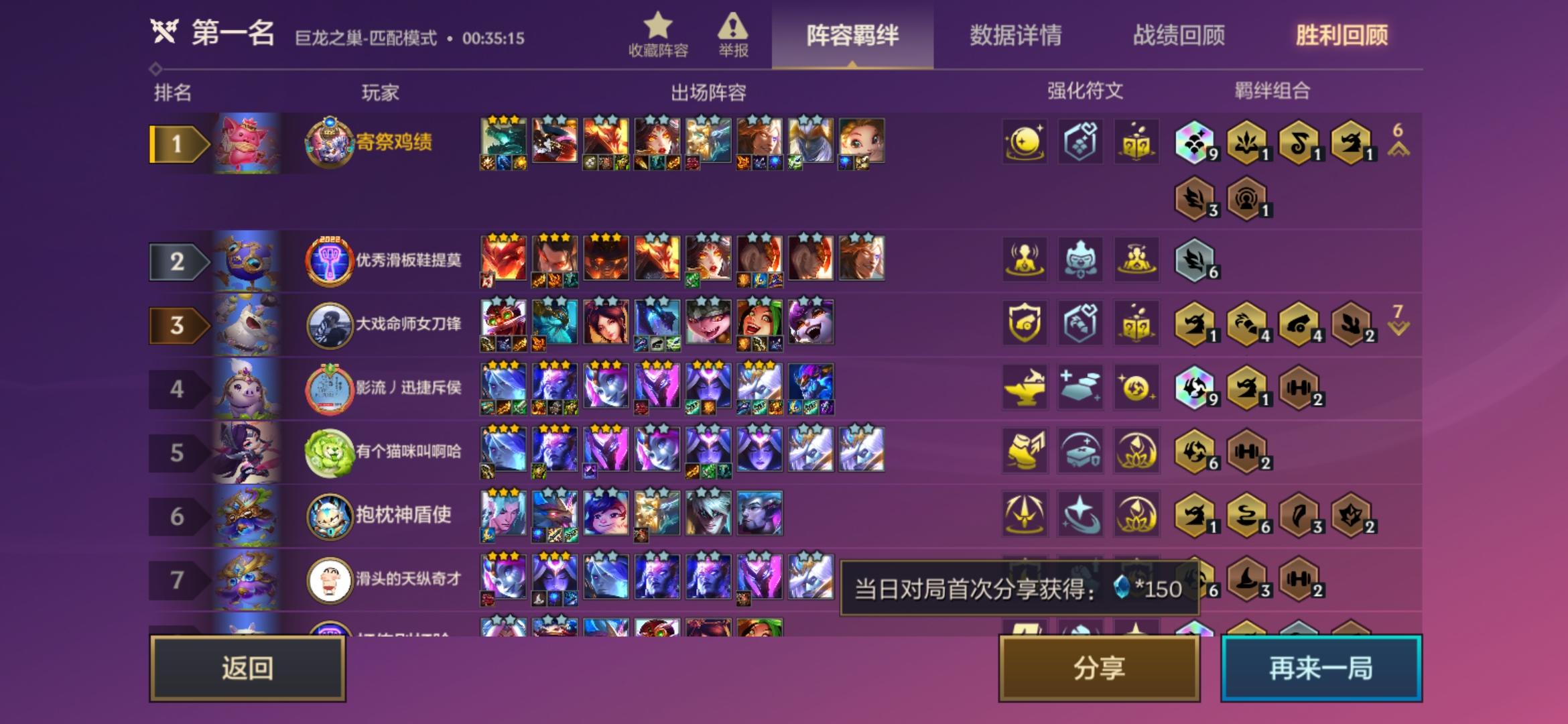 格斗半神,不需要海克斯硬玩也能玩,稳吃分阵容。没有半神转就用狗熊。有半神转给赛芬,后期阵容成型三个半神打对面9个。让对面感受啥是boss战,有赛芬的条件下装备给无尽吸血专职。冰鸟给蓝BUFF大天使科技枪,塞恩给垃圾法装,肉装和龙牙反甲藤甲给献祭,前期找塔姆,能三星就三星,不能后期看情况卖,基本上有冰鸟了,凑三半神就可以稳血递牌,后期阵容7-8人口就成型,<有条件的升8>温馨提示能不用狗熊就不用,狗熊太演员下面配图