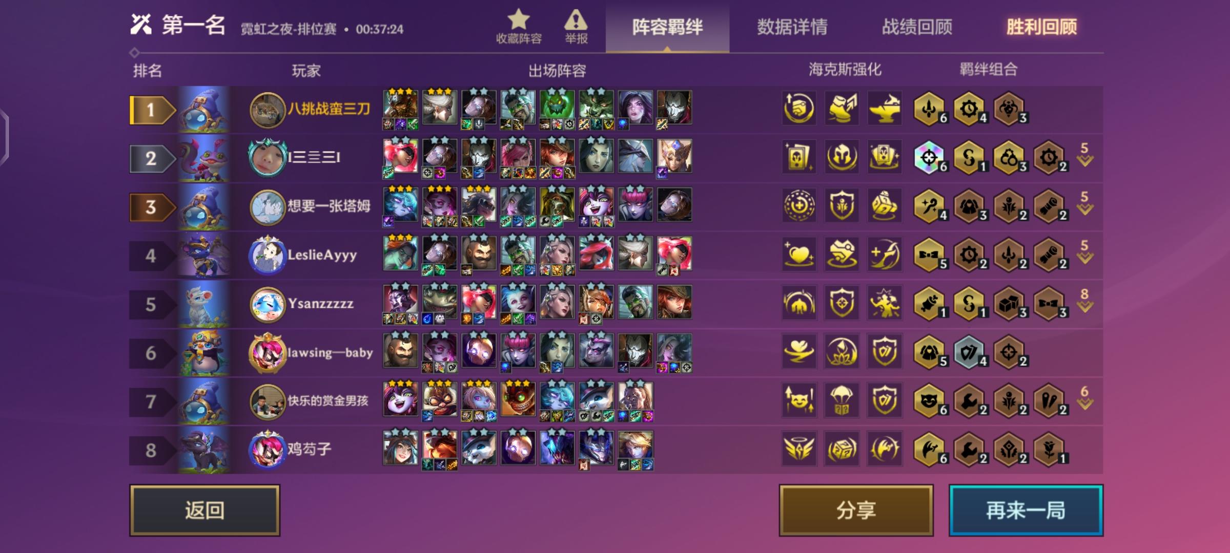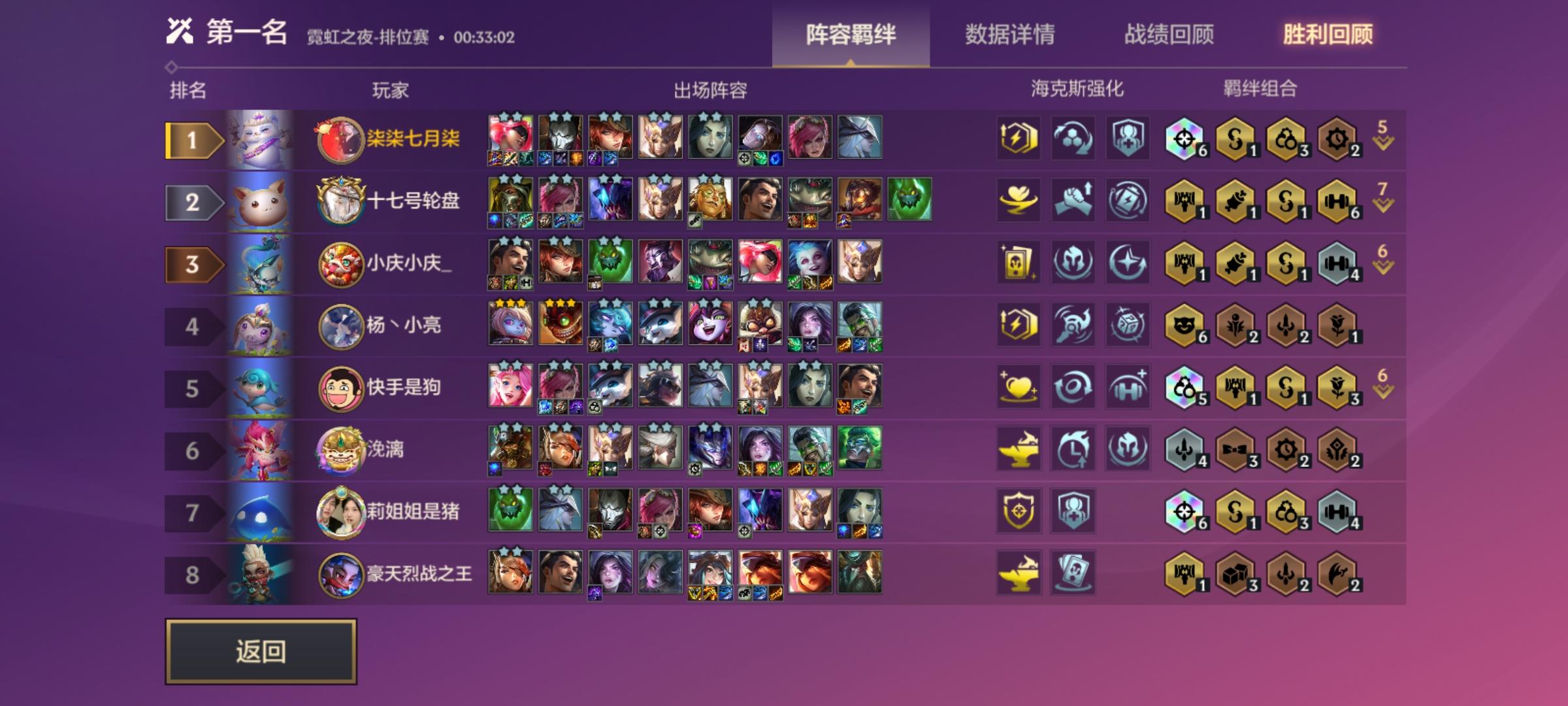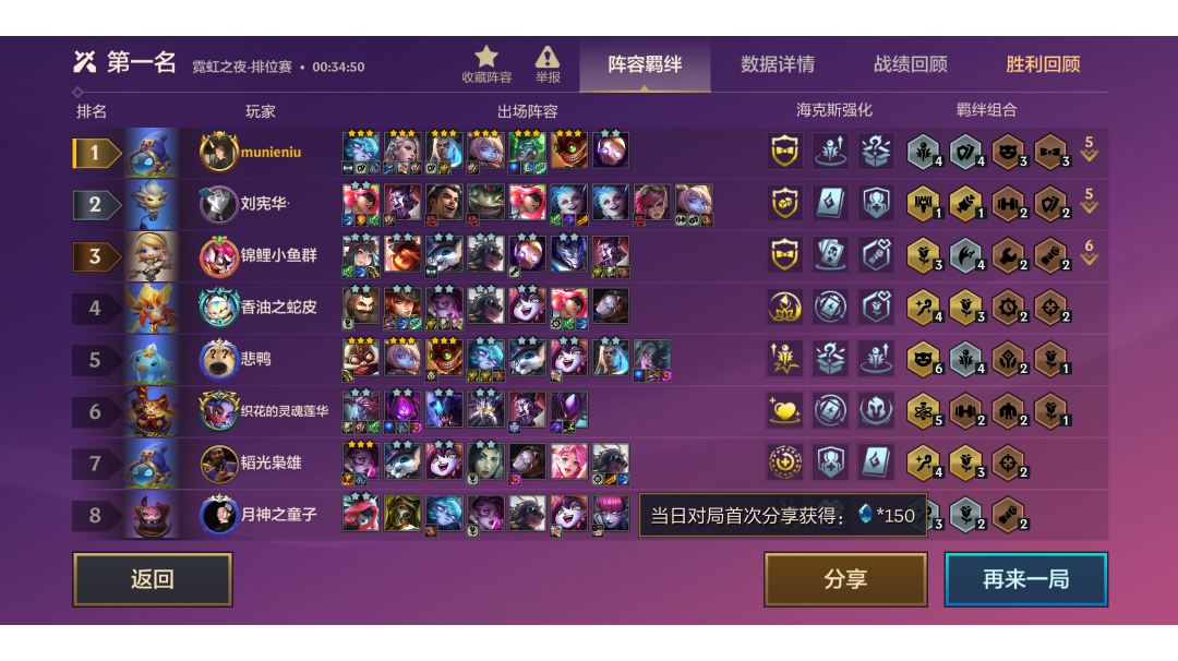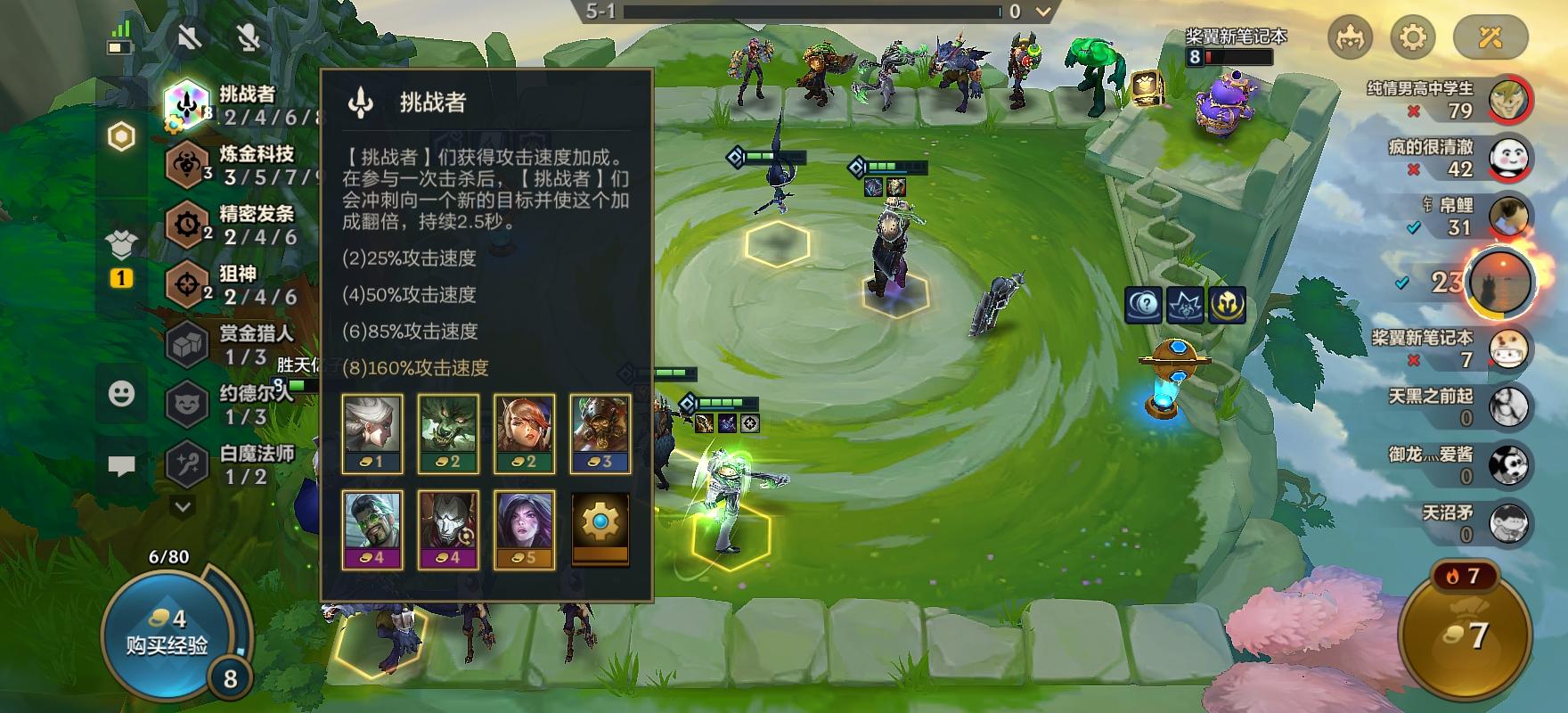 我今天又去打了几把,上图,这次没升级并且我快升9人口的时候只有大虫子、青钢影和凯特琳二星(用一星维克托替换了),再看看别人的质量,同行大虫子一直d牌,一开始质量比我好,但我只白嫖还有二星凯特琳+人口压制,他质量高的时候都打不过我,再对比一下连胜与不连胜的经济差!