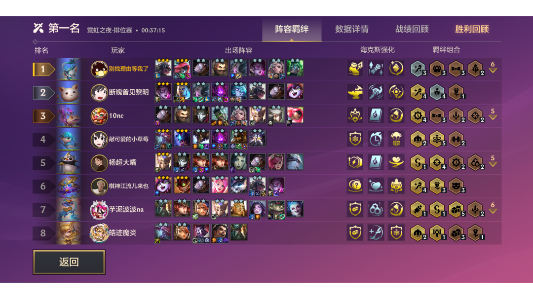 冷门吃鸡阵容------名流狐狸吃名流格位置,不建议在名流格刷在第一或最后一排的时候强玩(够胡也可以)运营简单:约德尔过渡上七d牌,看三费卡d牌情况再上八上萨勒芬妮阵容成型,布隆没来用诺手,狐狸没来用火男,蚂蚱,男枪打工均可装备:眼泪(蓝buff&圣杯)>大棒(离子火花&鬼书)>大剑(巨杀&科技枪)>负极斗篷(离子火花&龙牙)海克斯:名流转>蓝电池(彩色)>白魔转>蓝电池>妙手空空