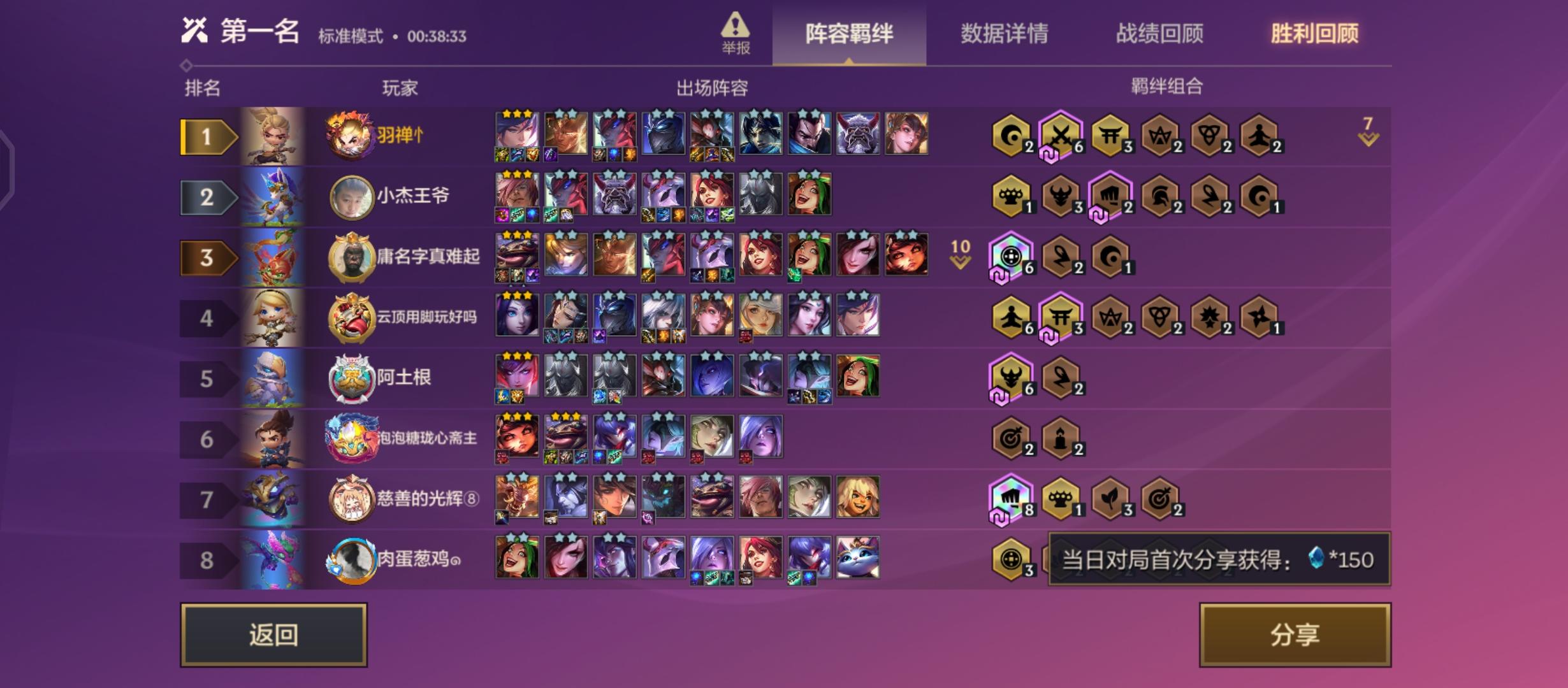 帝国莎弥拉,吃烂分推荐这套体系围绕核心是名流帝国莎弥拉,前期拿强势卡打工过度,中期6人口卡着利息找到莎弥拉凑成三帝国。其他卡拿双保镖增加前排坦度,当然也可以换成二星赛恩一个巨像能顶半边天而且控制强无敌,我比较推荐五帝国,那样会最大化莎弥拉的输出。补宝石是因为要吃名流的额外伤害,补发条这个比较随意,纯粹是想多一个控制以及白魔的效果。这套体系也有点帝国拼多多的味道了,但讲道理这些卡都是没什么人抢,