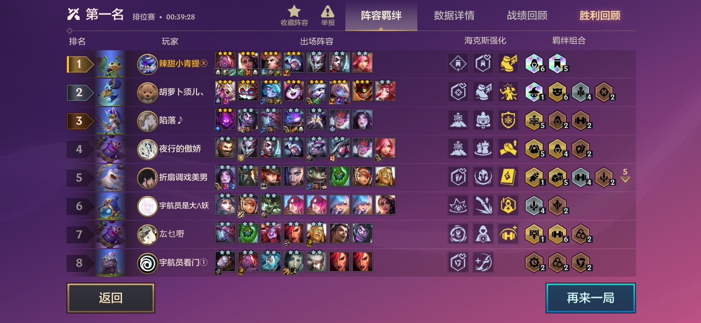 Hello,大家好,我是兔子,应粉丝们强烈要求,八五斗枪它来了,这套阵容后期上限确实高,不过十分依赖前期处理以及8级搜卡的好坏,但是依旧稳坐版本T0宝座,后期对阵版本热门阵容均有一站之力,打莎弥拉以及大嘴都是不虚的,先附战绩!在测试中一共玩了6局斗枪,均吃分,可以说只要前期运营好且8级抽卡幸运一点就一定是能吃分的,后期吃鸡还是要看能否上9人口以及场上质量,因为我们后期打的基本都是莎弥拉以及大嘴这