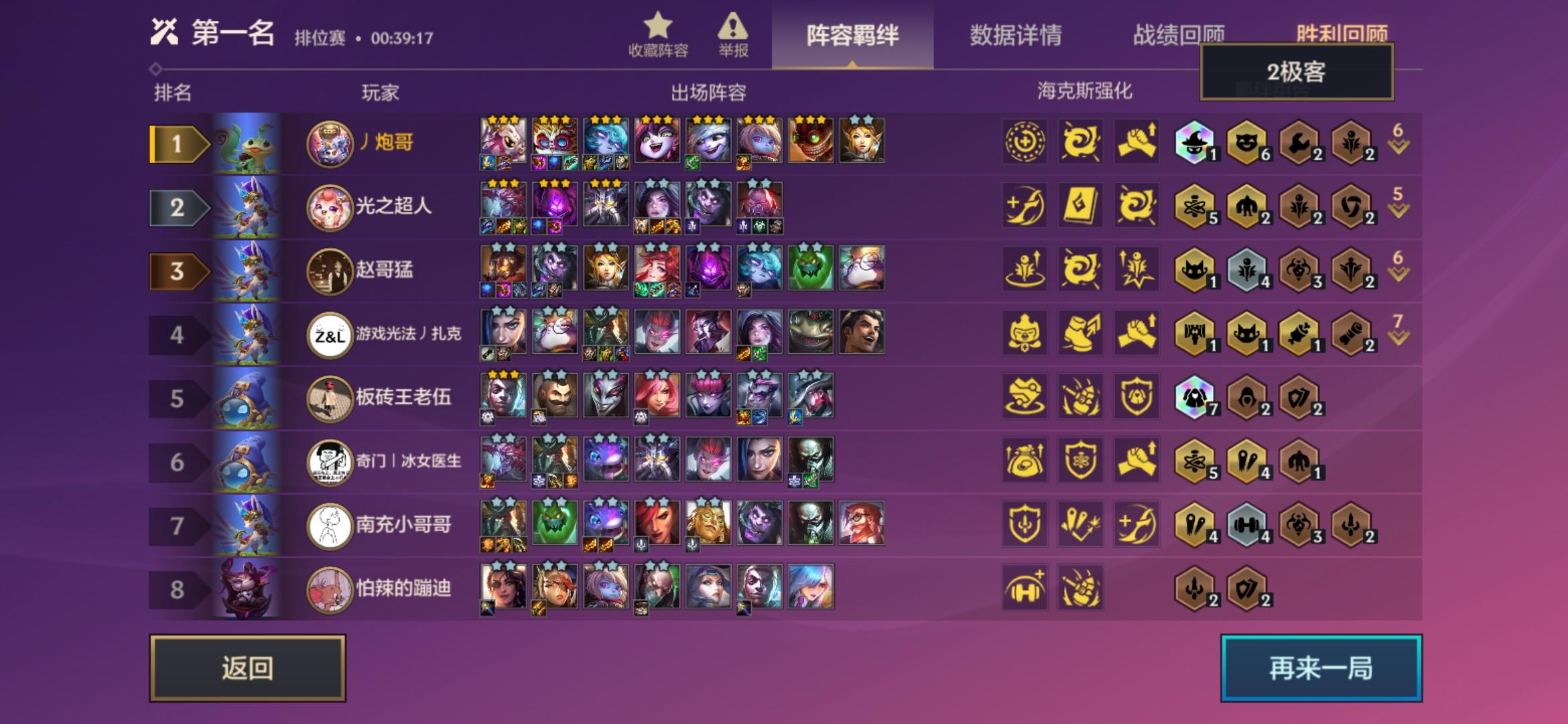 聊聊目前的局势叭。一天上钻,现在还卡在钻一,每把固定最少3家圣盾大嘴,正常四五家,运营阵容前期一定被入,撑到后期也不一定干的过,约德尔人正常局势不配看见小法,白魔栓狗过度有问题就老八,黑魔挑战者勉强玩,没有同行运营的好能和第一的大嘴四六开,这四还得是灵风吹的,看别人脸色摆展位,还得防机器人,需要图我可以发出来,我是什么都玩,前期的运营一步崩 后面你就看见盖伦个冤种狂徒反甲龙牙处理要六七秒,后面大嘴鬼刀巨杀再牛的前排也就是两秒,后排一秒吐俩,你以为那我玩大嘴不就行了?还不行,大嘴阵容把把四家,你内战还得内卷早一回合d牌外面运营的还得防着你,用你过渡卡你牌,因为如果不用圣盾大嘴过度打完三阶段就60-的血,金克丝是有点克大嘴,有意思的来了,金克丝前期也得用大嘴带装备过度😇拿这版本可有意思了叭