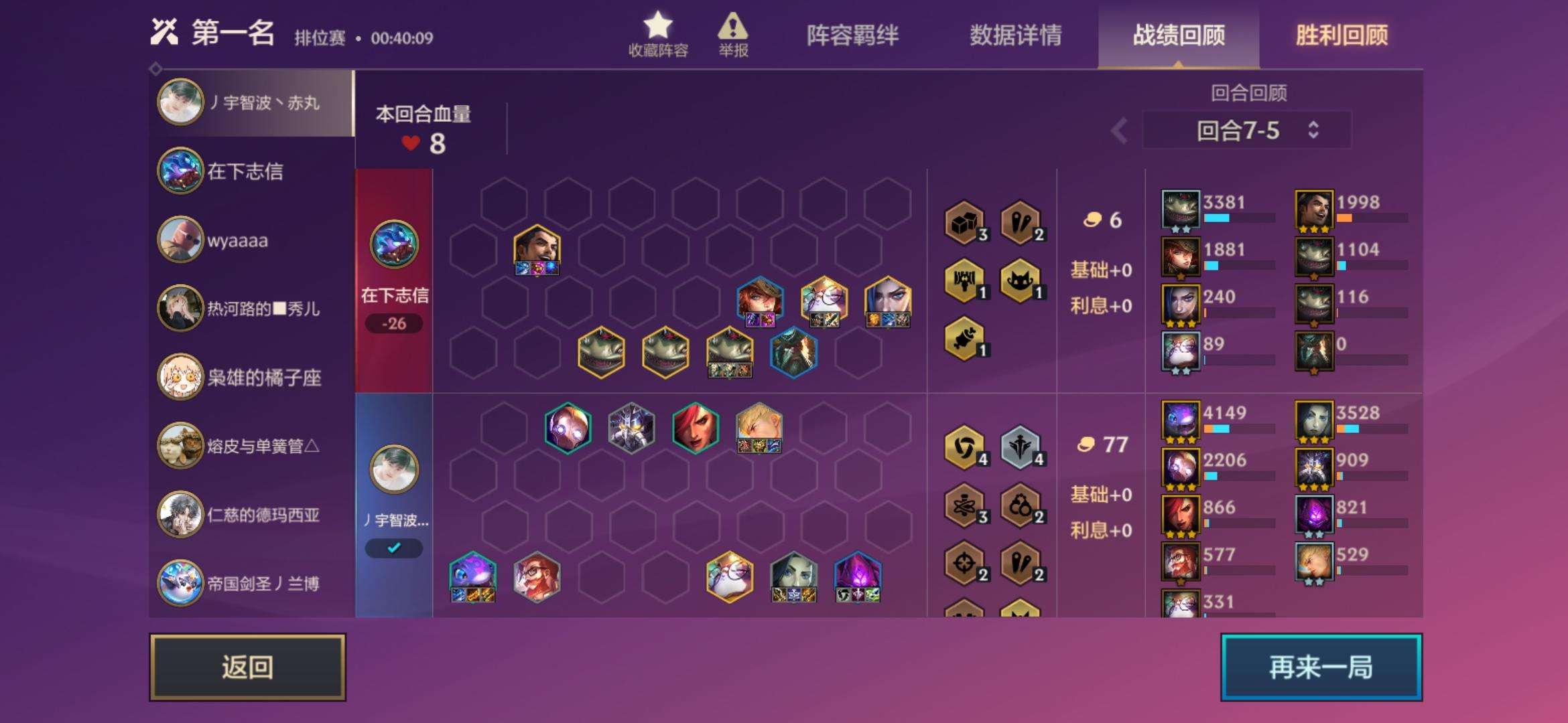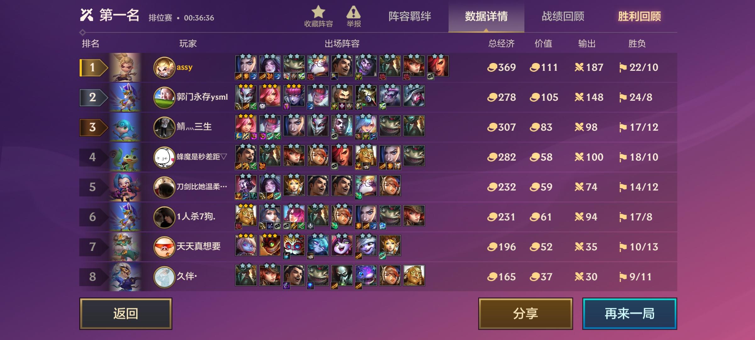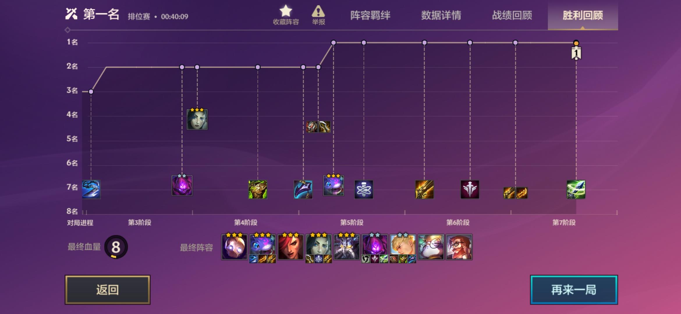Hello,大家好,我是猫呦,今天给你们分享一下最近猫呦玩的一套阵容--换形游侠,猫呦昨天休息时间打了一天,一天从钻4打到大师263分,一天时间肝到了国服第二,这套阵容最近能那么厉害的原因是韦鲁斯伤害回调了,没更新之前的三星韦鲁斯伤害是650但是现在改回来了三星的伤害是900,猫呦玩了这么多把就算同行再多我也能吃个5,6这套阵容强度非常ok,好了废话不多说直接上战绩,每一把的战绩记录猫呦都会发上来