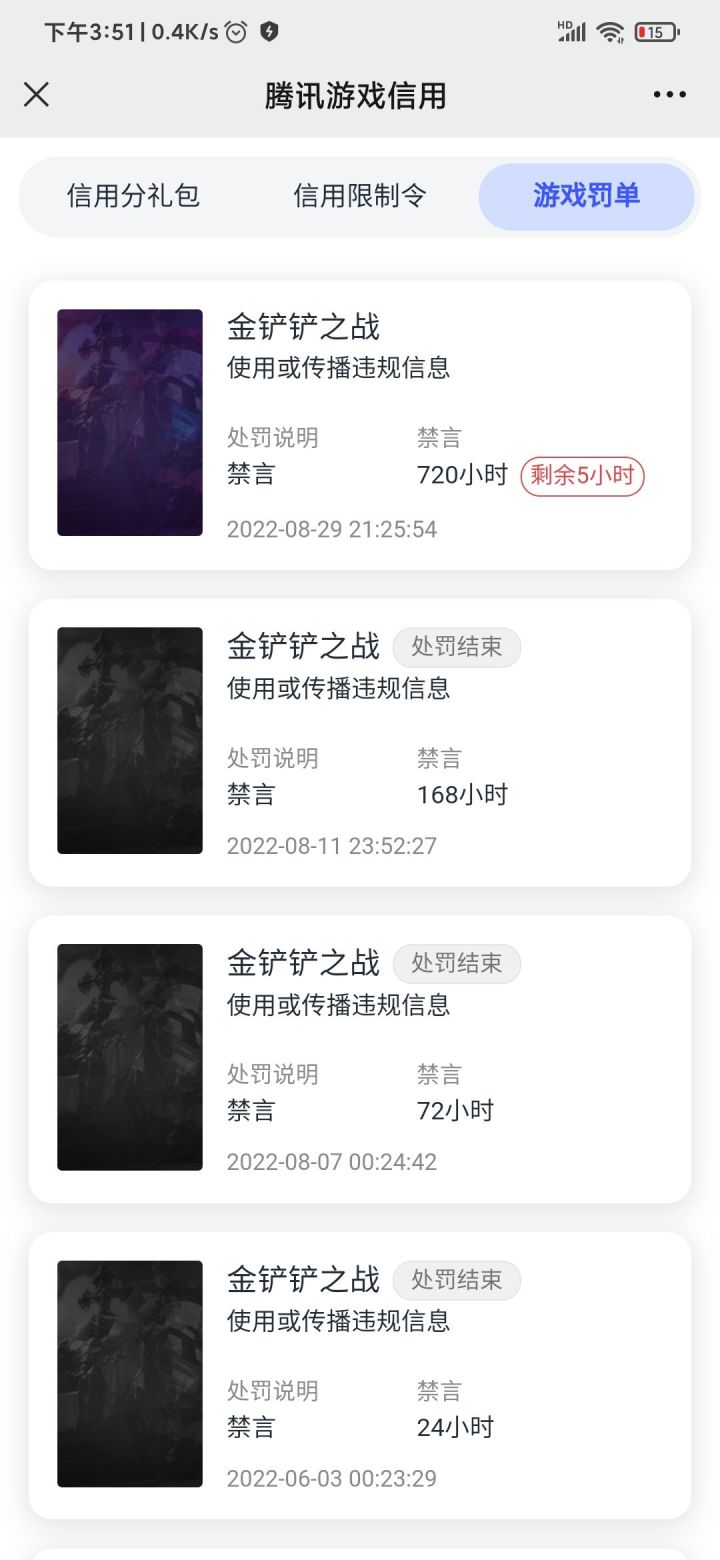 屏蔽词的设置是不是过于宽泛了?而且毫无警示,说个 玩了几把 被封禁言一个月😓连带着其它腾讯游戏也一并禁言,腾讯游戏这么多,就数金铲铲最离谱玩个游戏还得温良恭俭让,贱不贱啊?