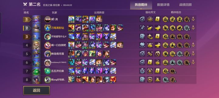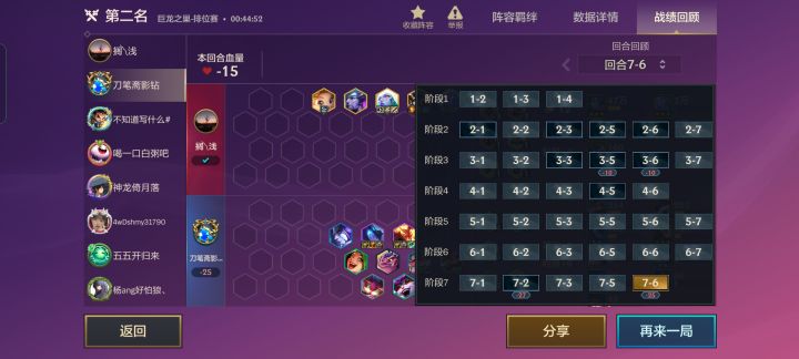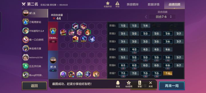 三星迭嘉三星雪人,装备还没给错,就这样老5出局。最后前两名都是95尿尿龙,尿尿龙不削弱,玩啥?s7真的是一个极其失败的版本,我甚至怀疑在玩测试服,卸载了。(大师局)