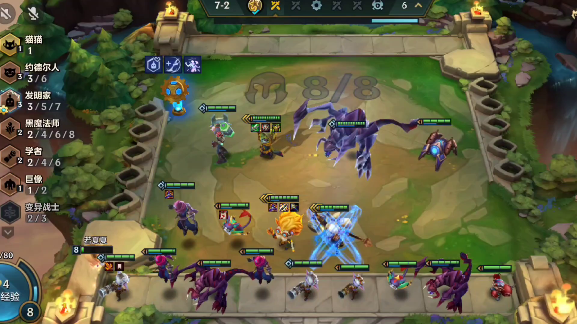 猫猫,发明家,黑魔法师,学者,巨像,约德尔人,六个羁绊可还行