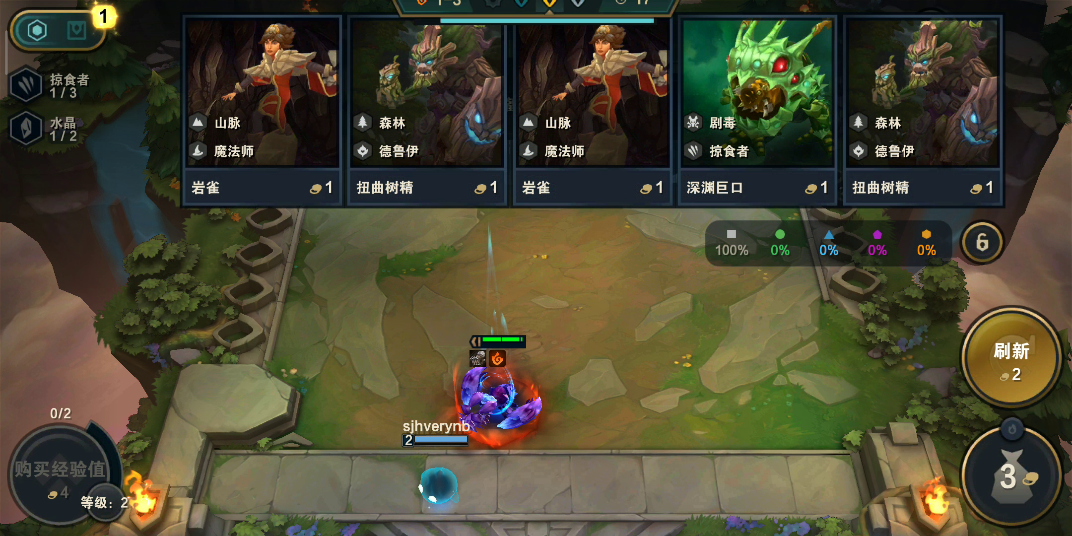 第二赛季新增特色玩法——元素地块每局游戏开始时会从4种元素随机挑选1种。第1个元素地块在选秀后,打野前在场。随着游戏进行,棋盘上会逐渐增加该元素的地块,3-1之后出现第2个。站在元素地块上的英雄获得对应增益,但是占用1个装备栏。同一局游戏中,所有玩家棋盘的元素地块完全相同,旋转对称。山:战斗开始时,随机单位获得1500生命值的护盾林:战斗开始时,随机林单位复制自己风:所有队友获得躲避几