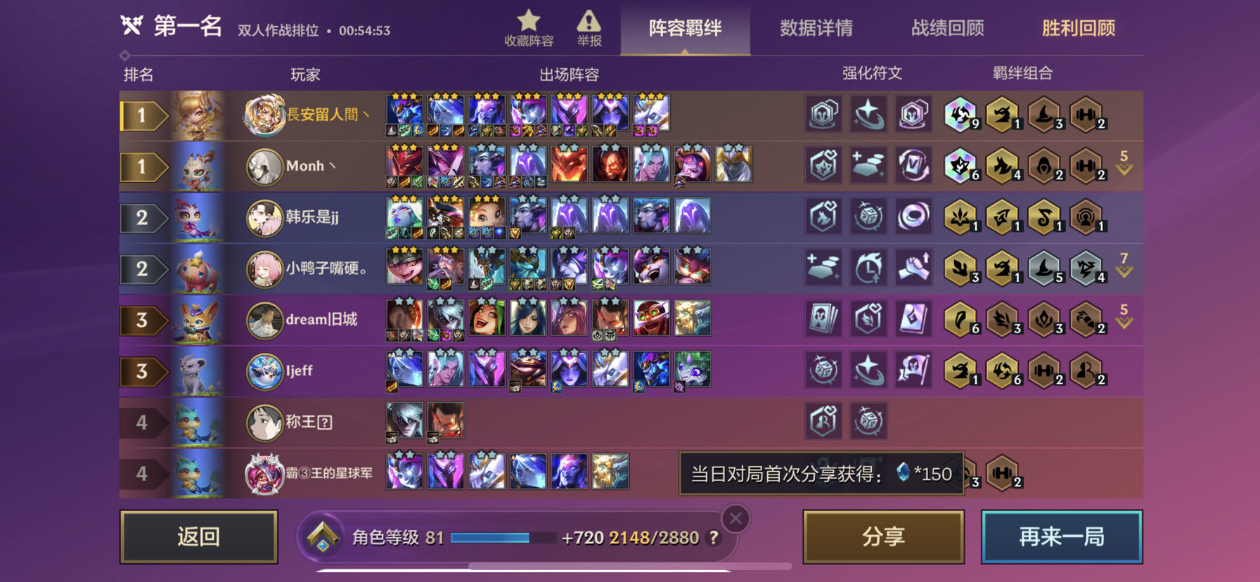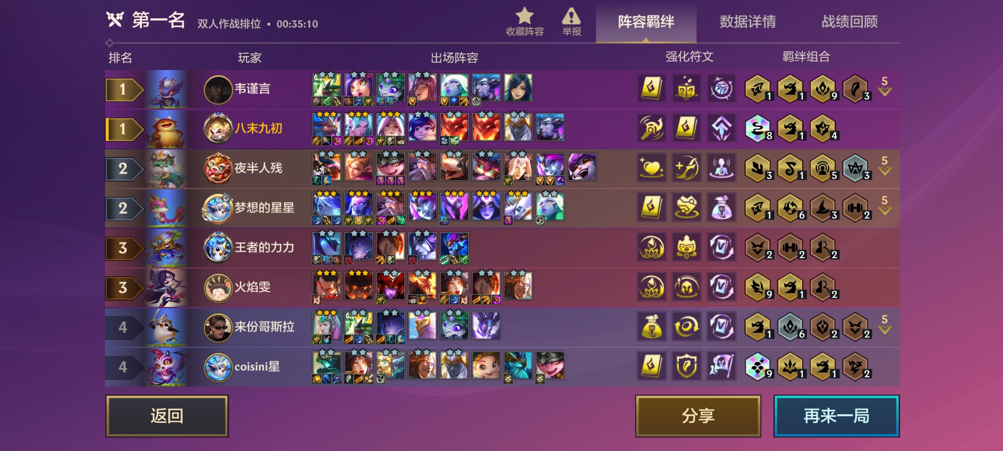 半神尊者加换形妮蔻熊,可惜了,对面妮蔻双狂徒,比我高了三千多血 不得不说半神这羁绊确实好玩,能整出很多花活,就是半神转职不好弄,不然还想试试半神努努半神蜘蛛之类的