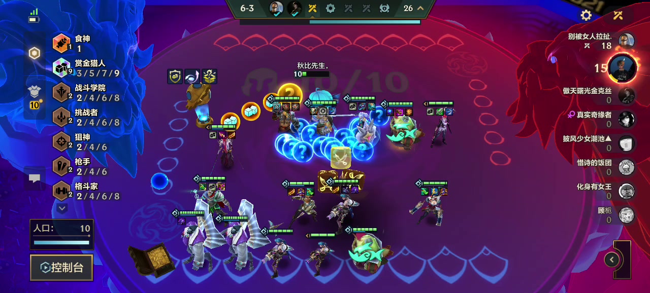 4-2开始阳寿局[表情_坏笑],混沌召唤赌出了一个吉星转[表情_酷],三个不可合成的纹章,还有个剪纸,加上第二个海克斯潘多拉,从0到九吉星只用了一个阶段,第二名玩七吉的人都蒙圈了。