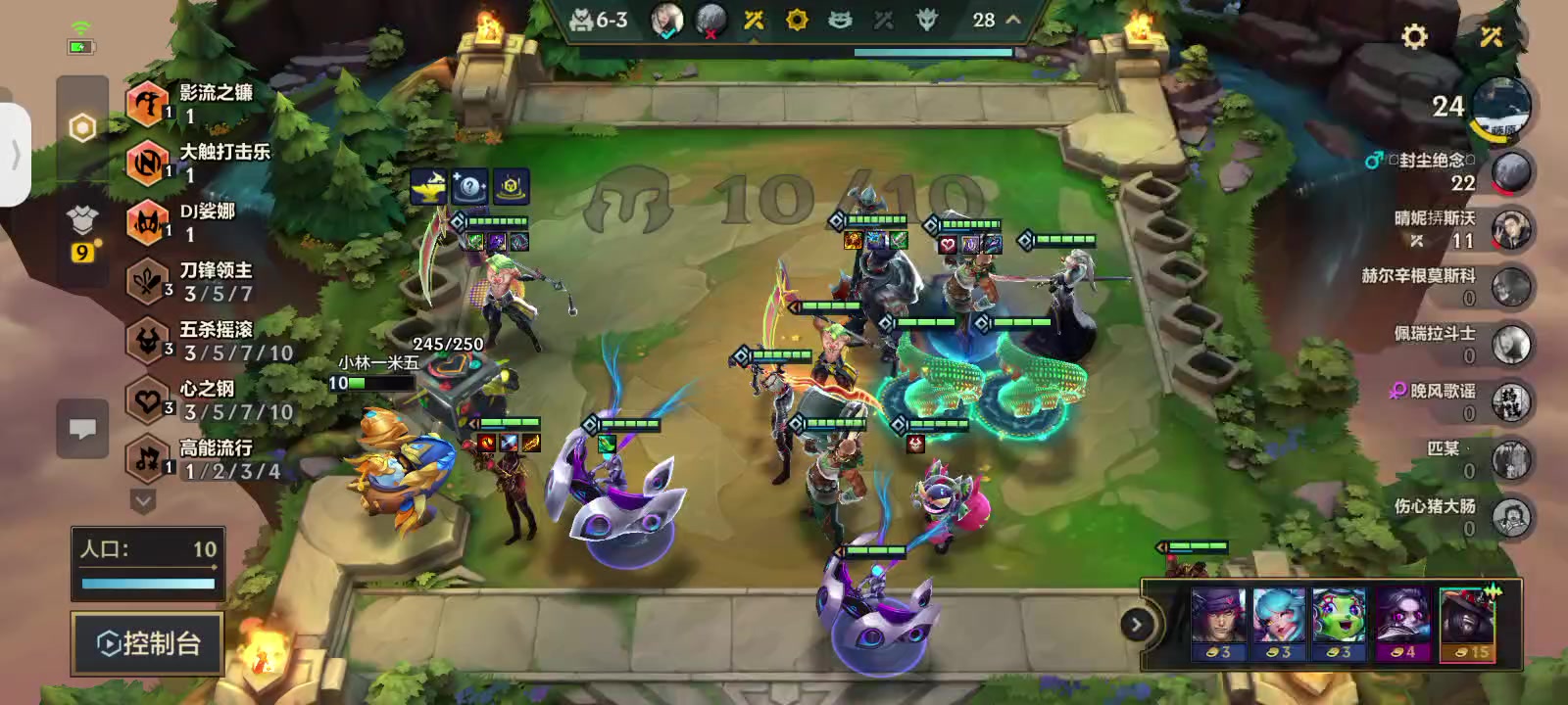 这把还是有点狗运的,九级之后一堆人都拿五费拿完了。然后在那互殴,等到我终于上九的时候,发现卡池里面没人拿烬,直接五十几块钱拿了六张。剩下的还是被他们卡住了。本来以为他们能追三星五费反杀的,没想到都互卡,卡的死死的,又没有运气D出其他的,剩下的都没有啥可以猛升等级的海克斯,所以只能选择在九级D。唯一上十人口的那一家还被送走了。就让我这个玩赌狗的吃鸡。