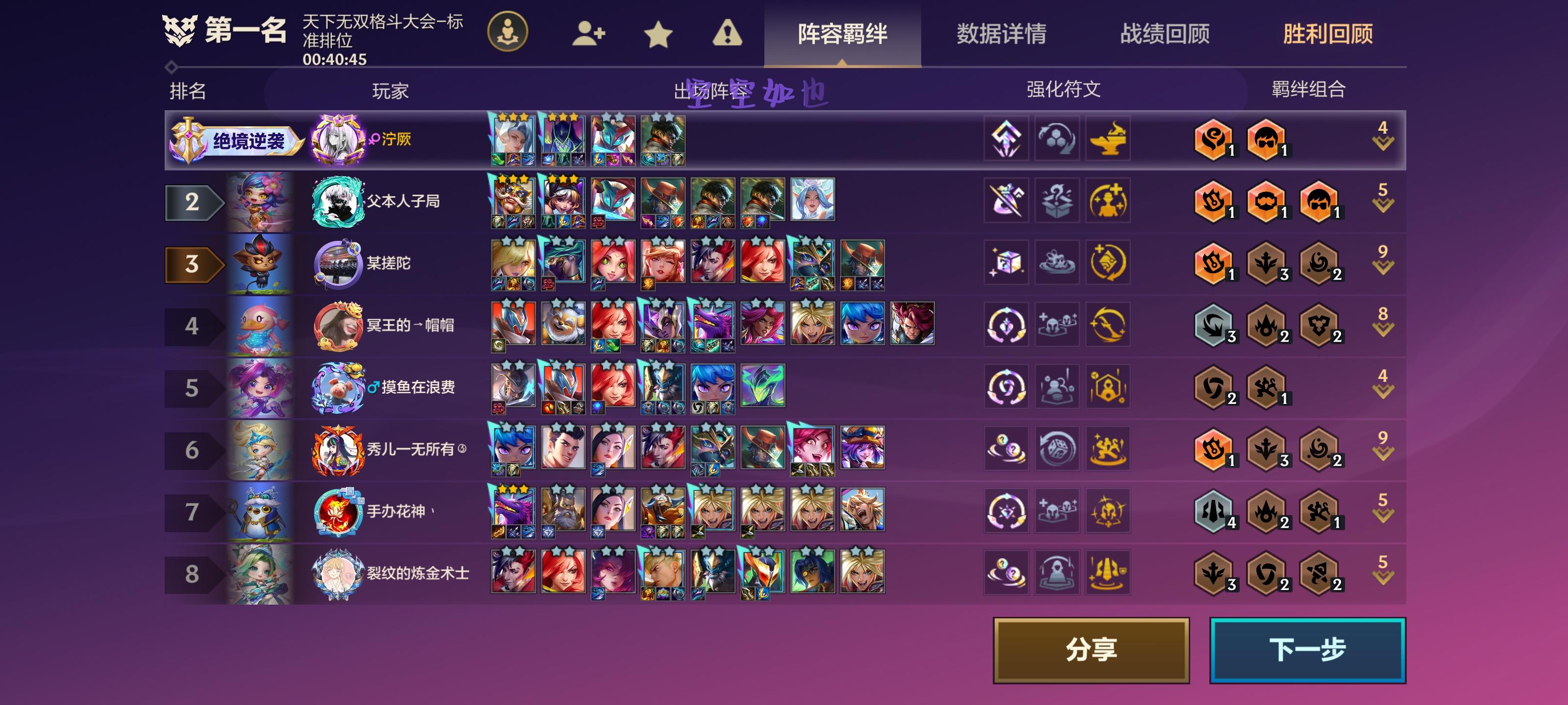 我这把钻石局,随便打的,9级配羁绊,6斗士+婕拉+酸辣粉,8个人口,怎么都塞不进去一个五费了,就随便凑一个护卫了,自己看着有斗士转,可以试试这个阵容,3个二星五费的质量还是很高的,8个人口就成型了,有两个斗士转的话,婕拉的果子给到给酸辣粉,给酸辣粉一个斗转。