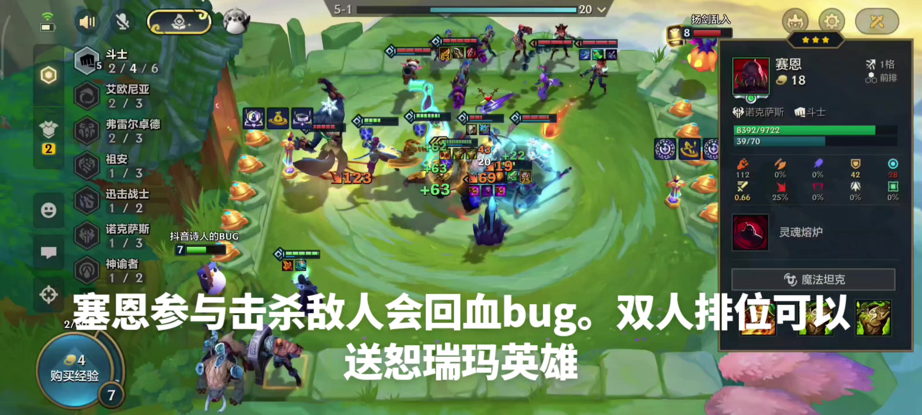 塞恩参与击杀敌人会回血bug。双人排位可以送恕瑞玛英雄
