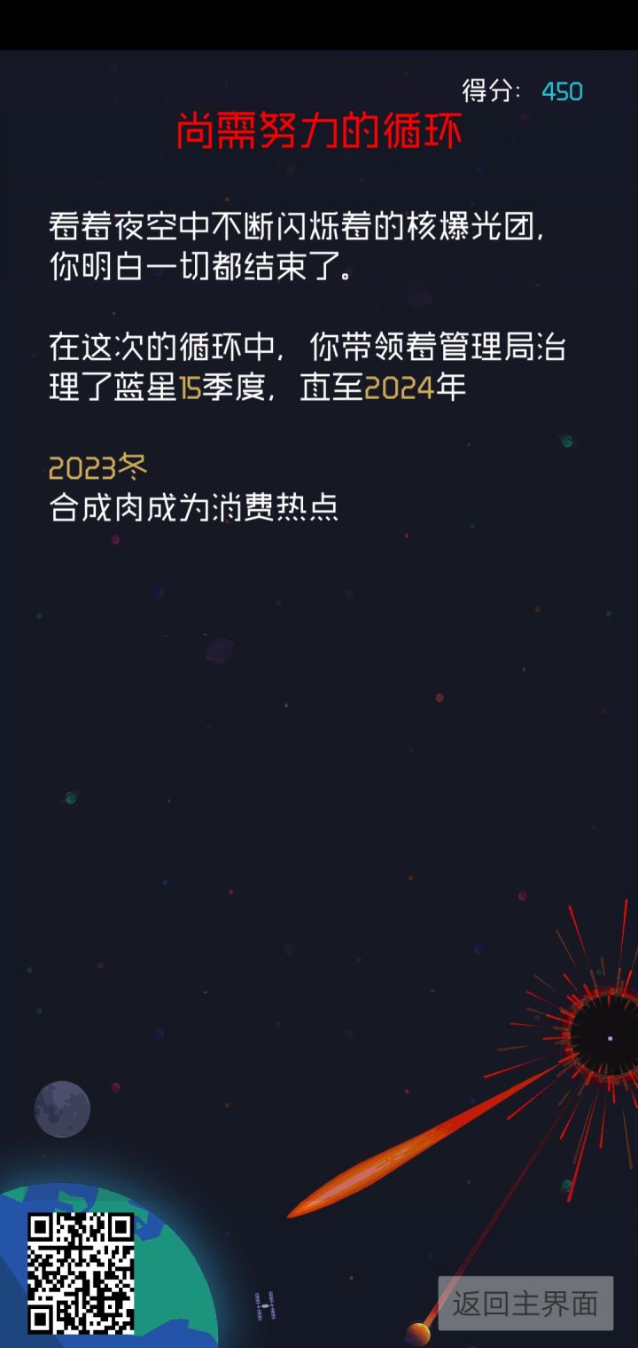 这里是有幸参加过一测的某个小透明,由于这种游戏难度很高而且这次测试整体增强了难度,导致萌新基本会会和我一样疯狂暴毙(没错,这次的的确确比较难)。所以就在这里向大家说一说这个游戏的基本套路和玩法,全当在游戏测试初期抛砖引玉,期待未来大佬们推出的各种结局的攻略贴。首先,由于蓝星陷入时间循环,导致你的回合数其实很有限(直到2033年),这里提示只要安安全全活到循环结束就能进结局。(嗯,越往后的结局科幻