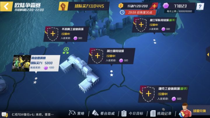 大家好,我是iOS三狮军团区的深蓝柚子,养成类手游接触过不少,但是第一次接触足球类养成游戏。发稿时V6,战力10万,本区排名20+,联盟名第九区。欧陆争霸赛是游戏中少有的玩家对抗玩法,对技巧有一定的考验,而且恰逢这两天游戏更新,我就想写下一些对其机制的分析和各战力阶段玩家的打法。由于本人处于中间梯队,所以对上下两梯队的一些看法或有缺陷,如有错漏,还望大家指正。△未到12点的球场,有一种风雨欲来前
