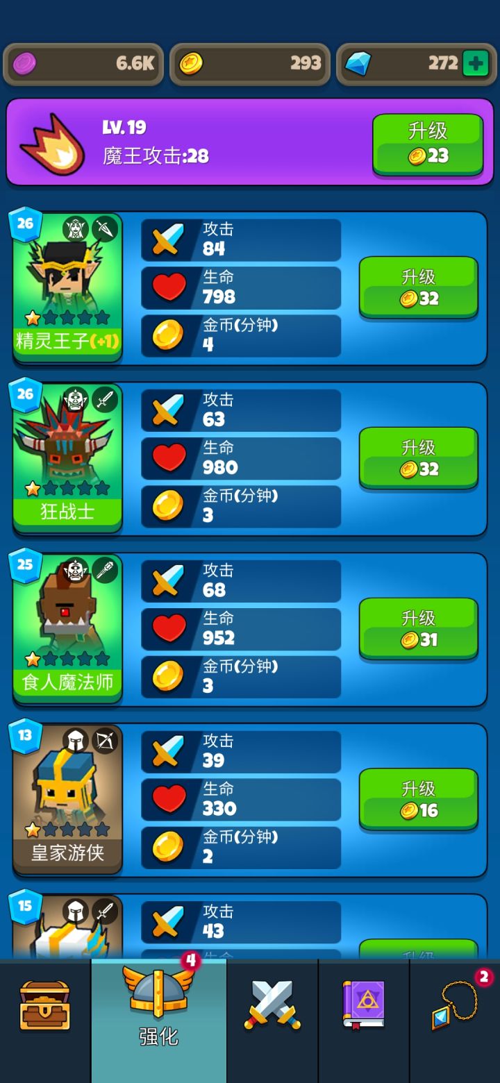 一个不太专业的新手开局攻略:开局过任务都会给英雄,不满意的话可以刷开局,具体我就不想详细了,不过我就没刷,开局给啥玩啥,就是俩人族俩精灵加一兽人然后前期过图主要依靠你手动点击,所以升级优先1.魔王2.前排肉3.后排治疗4.其他(主要是挂机金币)因为过图boss关,打boss的时候即使你的英雄全死了,但是时间还没耗完,你能点死就算过关,这意味着你的手速决定你前期的过图,然后,前期的看广告的自动攻击别乱用,因为他是可以和你手动叠加的,这意味着你手动点不过的关卡,看个广告,手动加自动双重攻击说不定就能过关。另外,钻石开神器开到阵容加1,就不要再点神器了,存钻石箱子开1000的灵魂宝箱,因为有上级保底10个灵魂。过100关,150关和之后的解锁活动,先不要打,因为每天只有一次,然后刚解锁是打不过的,等晚一点,升级多一点,只要在刷新前打就好,最好看广告开自动攻击配合自己手动打。