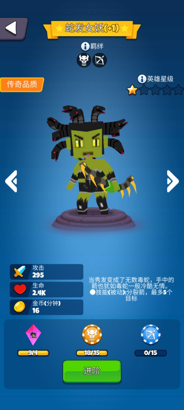 刚玩,在第20关有个箱子,开出了这个蛇女, 橙色品质的, 主升它吗😥