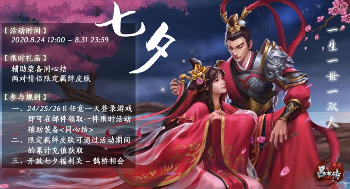 各位吕盆友们:见贴好!大家心心念念的七夕情人节即将来临,有恋人的小伙伴恭喜啦,没有的...咳咳...我能怎么办,赶紧自己想办法呗哈哈哈,七夕就脱单丨情系鹊桥,貂蝉望与君佳期相遇~银烛秋光冷画屏,轻罗小扇扑流萤。天阶夜色凉如水,坐看牵牛织女星。七夕将至,祝玩家大大们有情人终成眷属! 七夕不仅是情侣相会的佳节,更是抒发相思爱意的日子。所谓“念念不忘,必有回响” ❤貂蝉虽是个害羞的姑娘,
