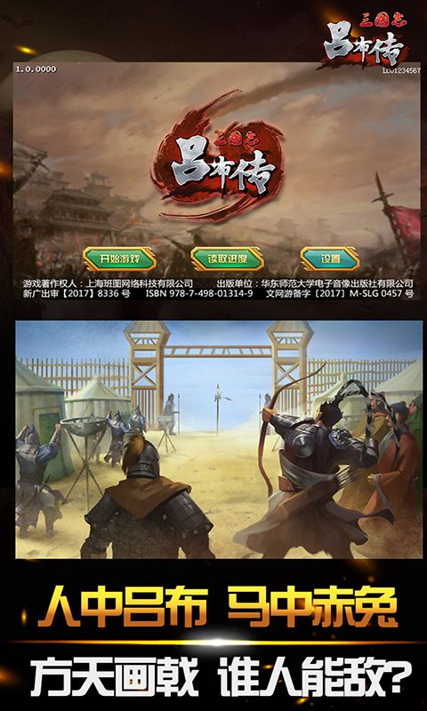 亲爱的玩家朋友们:一款由班图网络同人游戏旗下天元工作室出品的以三国历史人物吕布为主角而展开的角色扮演战棋游戏《三国志吕布传》,即将于2019年11月15日10:00正式上线tap。在此之前游戏也经历过了多平台的上线测试和磨合,本月度即将在tap平台与大家正式会面,虽然说是姗姗来迟,但终于还是来了,感恩这里的每一位遇见。游戏虚构了吕布在三国乱世中挣扎的故事!让玩家通过战斗自行选择吕布不同的结局,