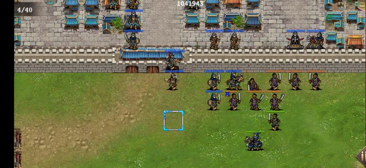 这一关确实很难,而且主要是弓箭弩车太多了。而且不能进内城,又有伏兵。我换了一种思路是让臧霸孙观绕到北门去,因为吴敦能吸引弓箭手,直接放弃西门和南门。看我的图。因为没有特意去sl去刷暴击和双击。过关的时刚好是40个回合。