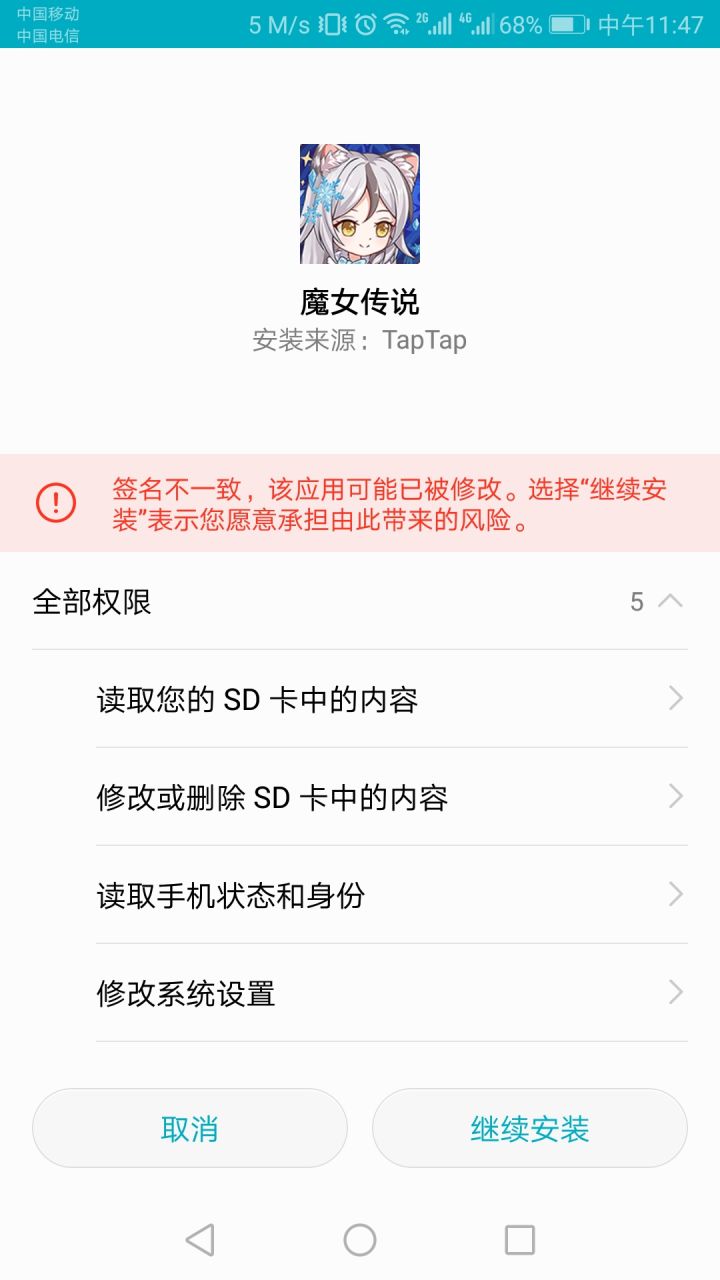 我确实不知道这个签名不一致是啥……这是咋了呀?我下的盗版????bt一刀9999???emmmm……