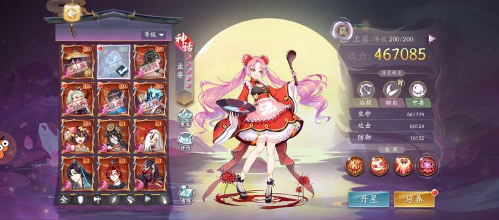 此攻略来源于玩家:鸥推荐实用主流阵容一:前期孟婆山市双神秘,后期山市换阎罗,加上四亲和,苟命输出流,平民最为推荐,没有之一主线送一个孟婆,画皮和孟婆选孟婆,再出一个就能上三,加上送的山市之主,输出不低,孟婆技能机制,狂堆生命值,既能抗又能打。阵容优点:孟婆易获取,山市活动送,主c养成难度超低,四亲和挂件低星可用,高星更强,因此战力成型极快,四亲和减技能冷却加回复,保证孟婆抗伤不死同时靠技能机