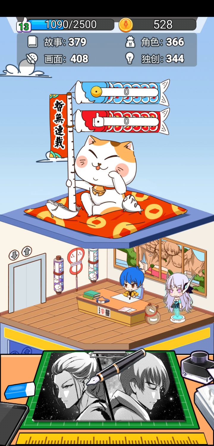 emmm,玩了一会出了三个bug,不过有一个可能是手机的原因。1.一直点任务领取,一直没有信号,但别的乐意点2.可以连载了但是却在连载那里找不到作品,空的。3.进去了开始还好的,让一秒钟差不多就出来了个那个(看图)但还是不错的,继续加油