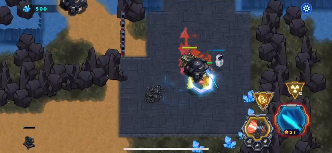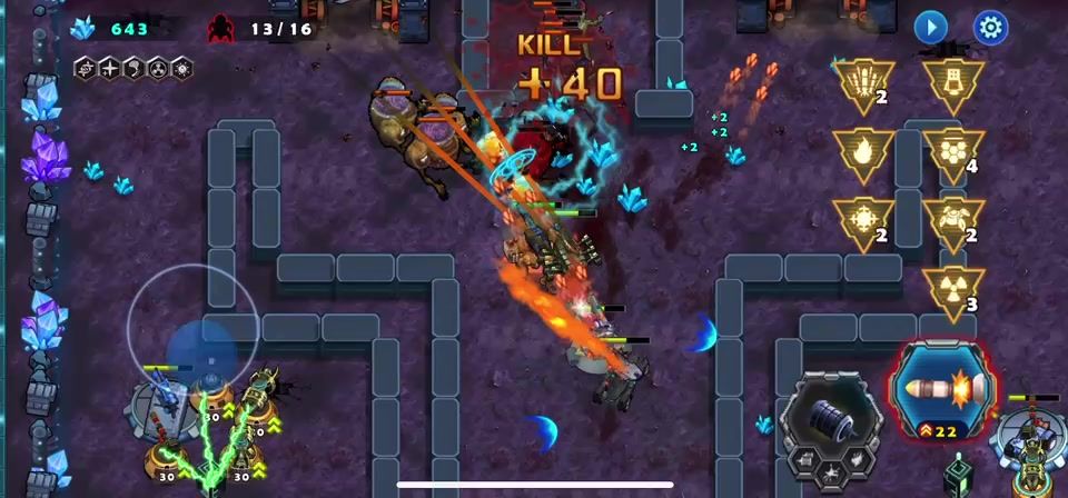 战车来到了异虫的第四关,也是这一章的最后一关,开局就很激烈,敌人的会从一个大的分裂很多小的敌人,要先打掉大的敌人,还好的是这关的资源很多,可以不断的补充血量,让自己的枪塔等级提升,最后的BOSS没有什么难度,挺有规律的话摸清规律可以无损摧毁它,通关视频请参考。