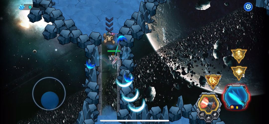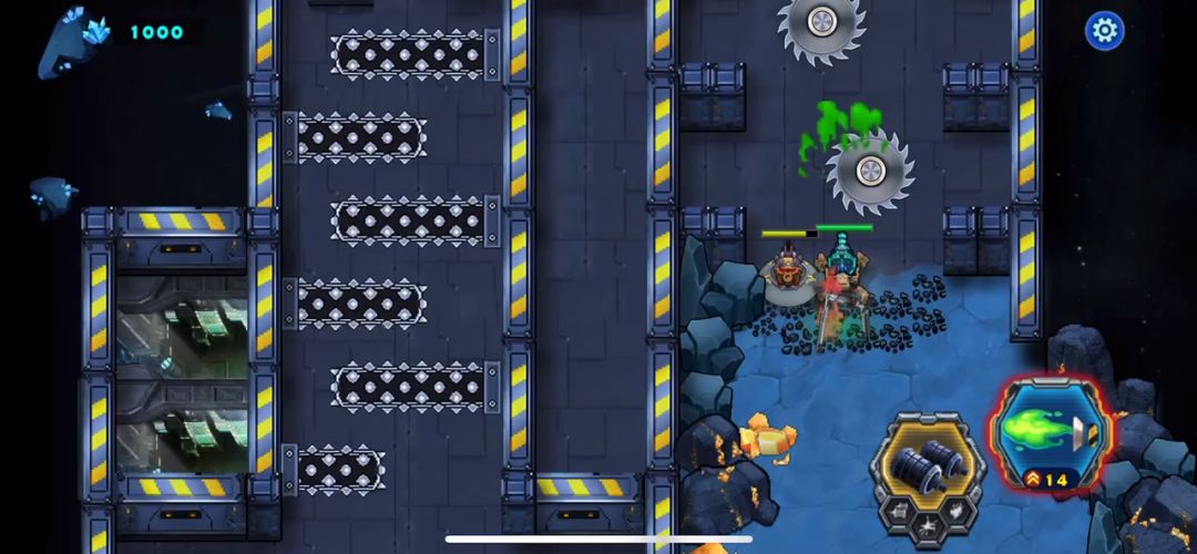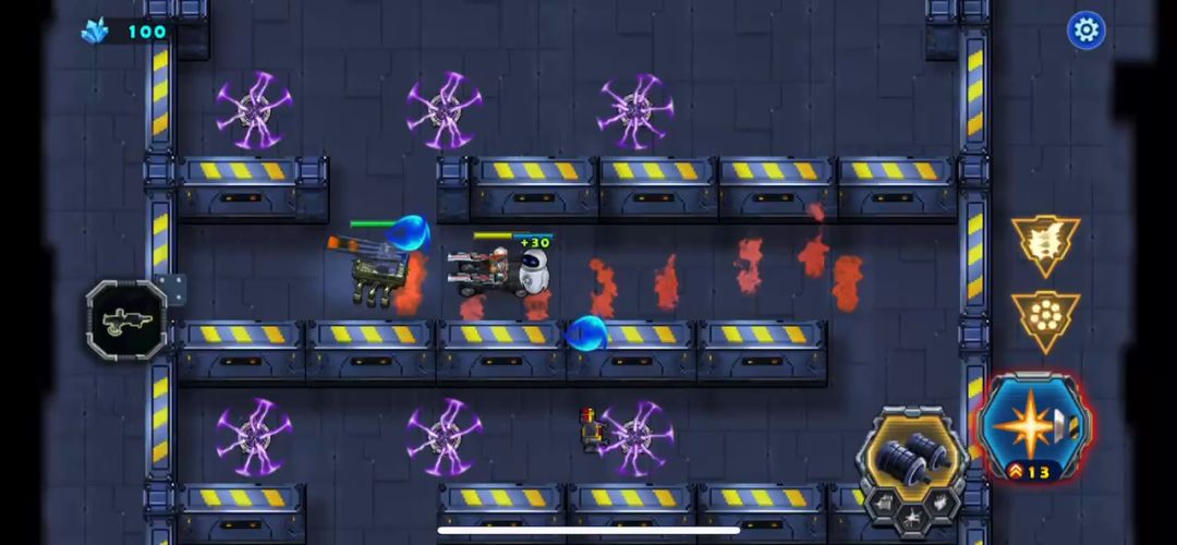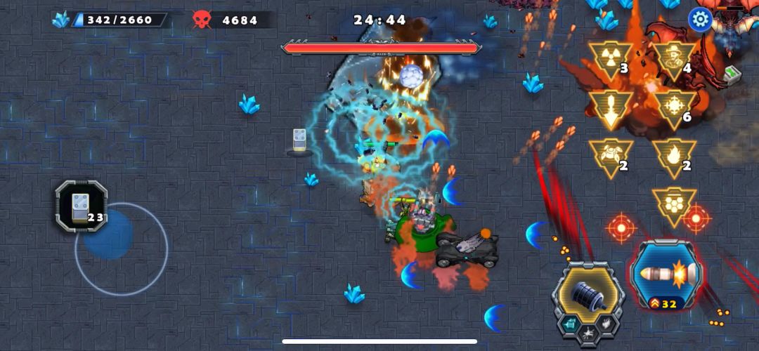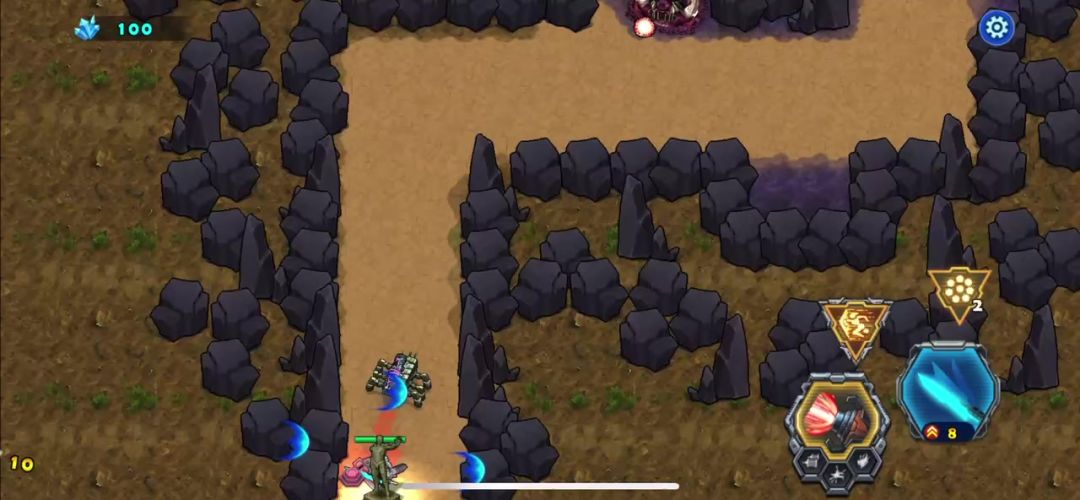 异虫的最后一局,战车来到新的地图开局周围都是敌人,先快速肃清周围的敌人后沿着路线走会碰到碰到守卫道路的敌人,战斗天使可以使用技能隔着墙消灭敌人会爆出很多的攻击增强加成,全部吃掉战车增强了攻击力对付最后BOSS时更加轻松。BOSS是一直大虫子别看个头大其实很弱几下就拿下它通关。