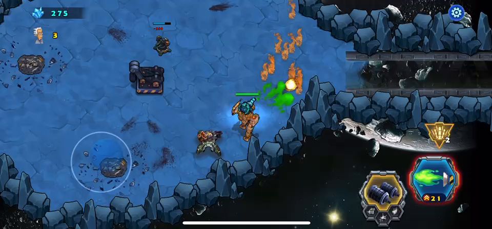 战前三问:你的战车升星了吗?你的装备强化了吗?你的战车携带副车了吗?这是攻打后面新出地图的前提条件,如果都符合了上述情况那就跟我一起推图难度关卡吧,这局地图周围喷吐毒液的生物在打掉后会出现灯塔(放置枪塔打击敌人)很容易打掉也是过关后的加分题。地图以路障被划分三部分,路障需要等宠物摧毁,期间会有敌人进攻清除它们,除驻守此关的敌BOSS在房间内还有两个副手机器人在地图内出现,利用投射枪隔着围墙打掉。基