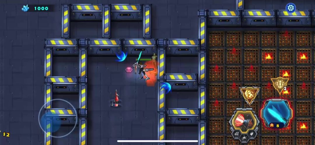 宠物篇的地图每局都有惊喜,这次到了营救EVE的第二关也是很新鲜的玩法,开局一定要拾取地上的灭火器,后面它将发挥很大的作用,没有它很难想象你怎么避开地下的火焰。图中有座控制台打爆后通往BOSS的区域就通了,参考视频利用技能斩杀掉就通关。很好玩的一局。