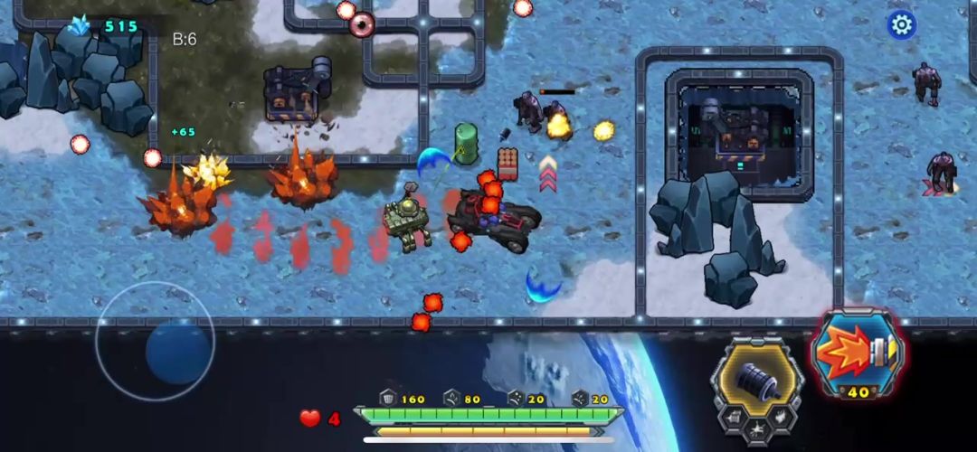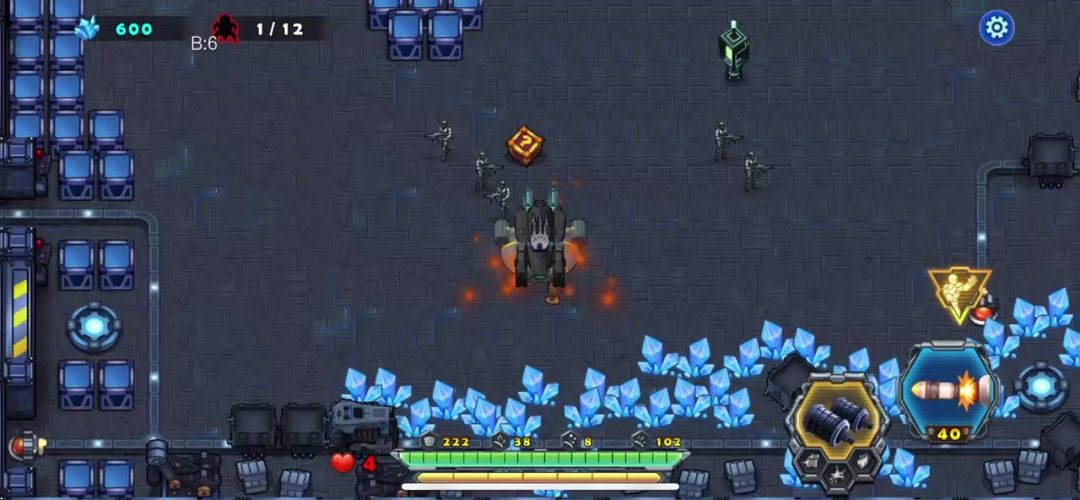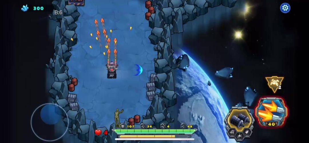 新人玩家救出了黑龙君后,就来到了第一章的矿山巨兽,此关时的战车等级比较低,手雷的威力也有限。巧妙的躲避敌人的子弹是关键,我们的枪塔可以按住后松开,让它变成自动射击的模式。这样就可以只操作手雷和控制战车了。轻松了许多,这局的守关小BOSS是个轨道铁甲车,利用它有节奏的攻击找出破绽摧毁就顺利通关!