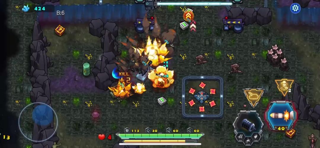 战车来到了异虫的第四关,也是这一章的最后一关,开局就很激烈,敌人的会从一个大的分裂很多小的敌人,要先打掉大的敌人,还好的是这关的资源很多,可以不断的补充血量,让自己的枪塔等级提升,最后的BOSS没有什么难度,挺有规律的话摸清规律可以无损摧毁它,通关视频请参考。