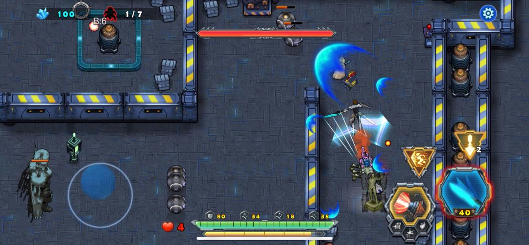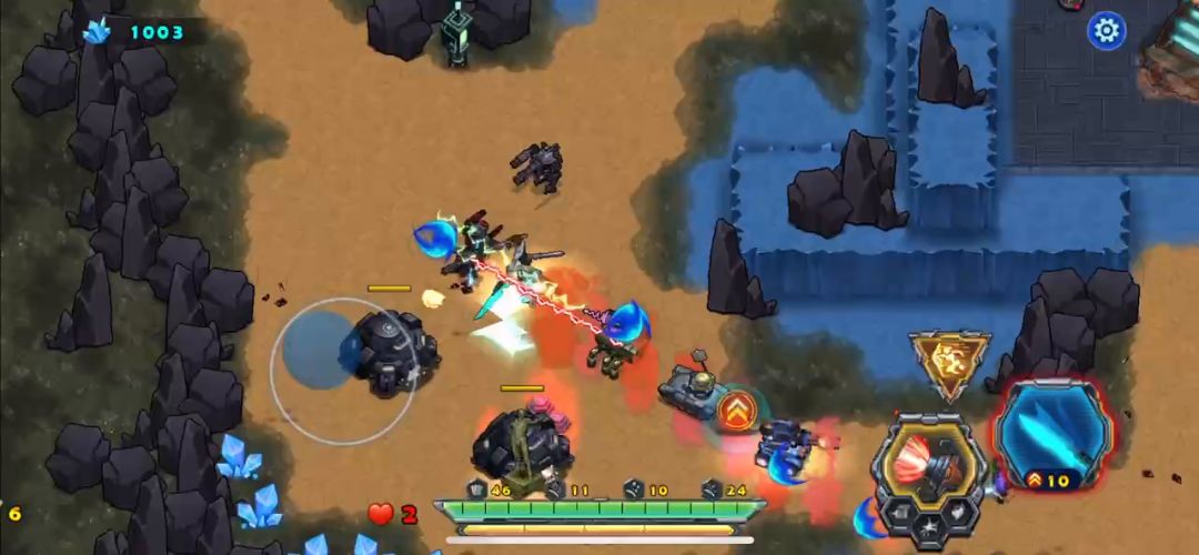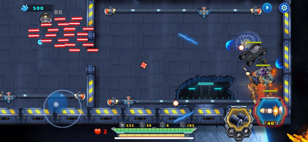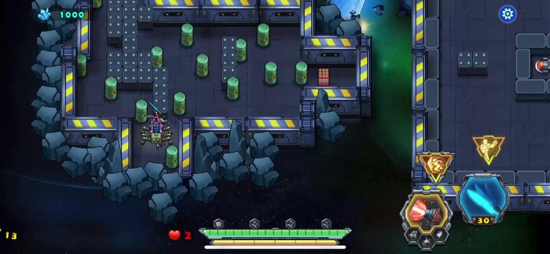 开局后天使战车不要畏缩不前,只有敢于冲杀才能胜利,利用瞬步斩无敌的技能斩杀敌人的圆球小分队,并且解救出被困的工程师后北上击败巨人,同样也需要瞬步斩的配合才能在不掉血的情况下击败它,剩下的就是要巧妙的打敌人的供电系统破坏掉,不然是通不了关的,敌机关发射的射线掉血很厉害,不要硬闯,打爆供电系统射线就没有了,兔耳怪要隔这墙体打它,它攻击不到我们战车,我直接不打越过了、这关的BOSS有点凶,射出的光线密集