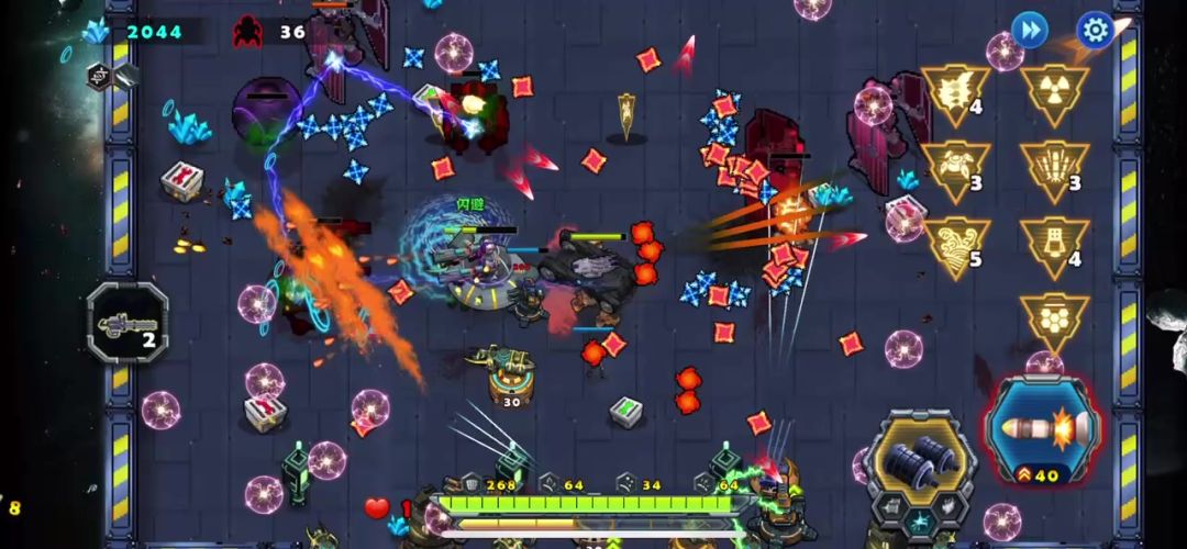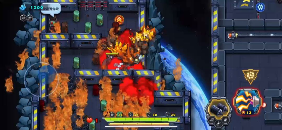 这一关是空中堡垒的最后一关,开局后天使战车不要畏缩不前,只有敢于冲杀才能胜利,利用瞬步斩无敌的技能斩杀敌人的圆球小分队,并且解救出被困的工程师后北上击败巨人,同样也需要瞬步斩的配合才能在不掉血的情况下击败它,剩下的就是要巧妙的打敌人的供电系统破坏掉,不然是通不了关的,敌机关发射的射线掉血很厉害,不要硬闯,打爆供电系统射线就没有了,兔耳怪要隔这墙体打它,它攻击不到我们战车,这关的BOSS有点凶,射出