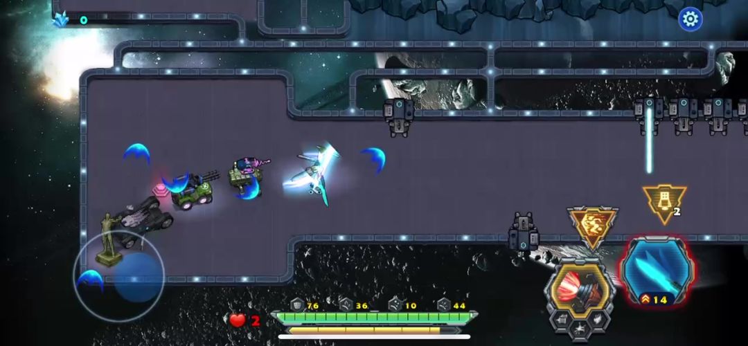太空天梯里面的关卡,今天终于破解了,以前碰到这个关卡就慌慌张张的,原因就是四面八方出击的敌人几下就会引爆核设施导致游戏失败,这次就没打算过关,试着不用战术卡单凭战车闯过去,还真闯过去了,携带的三辆战车负责保护一个,剩下的有主战车用双雷火力覆盖找到了破解打不了的方法,请新手玩家参考.