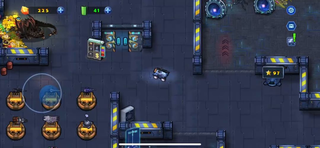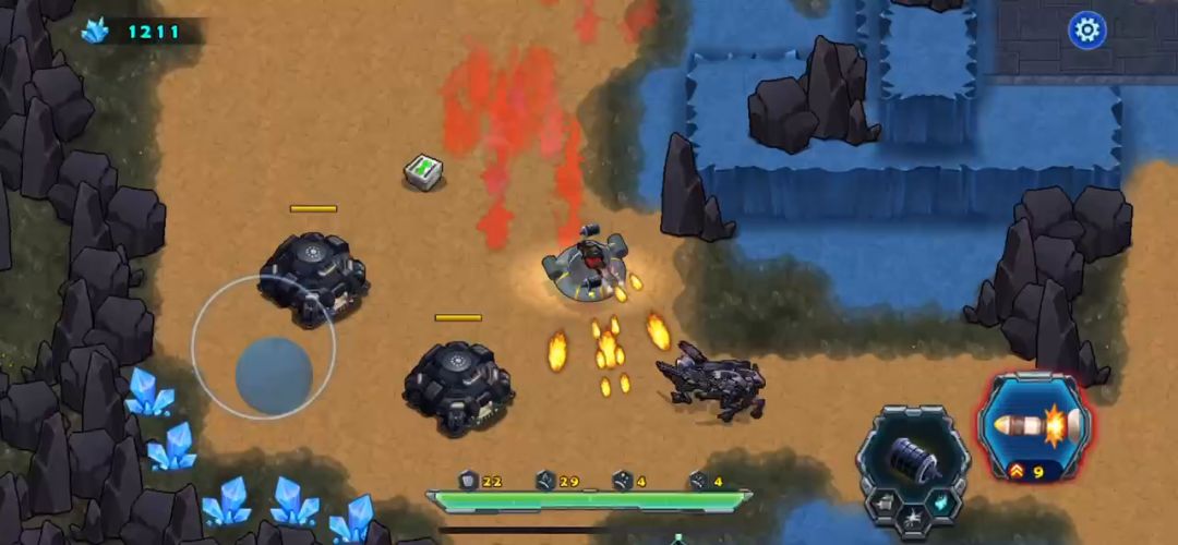 用飞碟战车打沙丘魔堡的最后一关,这局敌人两路不断的进攻,敌基地还有机关枪塔做防护,打敌基地要先摧毁激光塔,激光塔又有供电系统可以帮助其恢复血量,时间拖的越久,敌人的进攻部队就会越强大,与其坐等敌人强大,不如在其强大之前搞掉它,前提就是我们的战车要有攻击性,战车直插敌人心脏基地,利用车载枪塔加手雷强破敌人激光防御,摧毁基地,基地被毁后,BOSS飞行球出来了,没有难度打爆就三星通关。