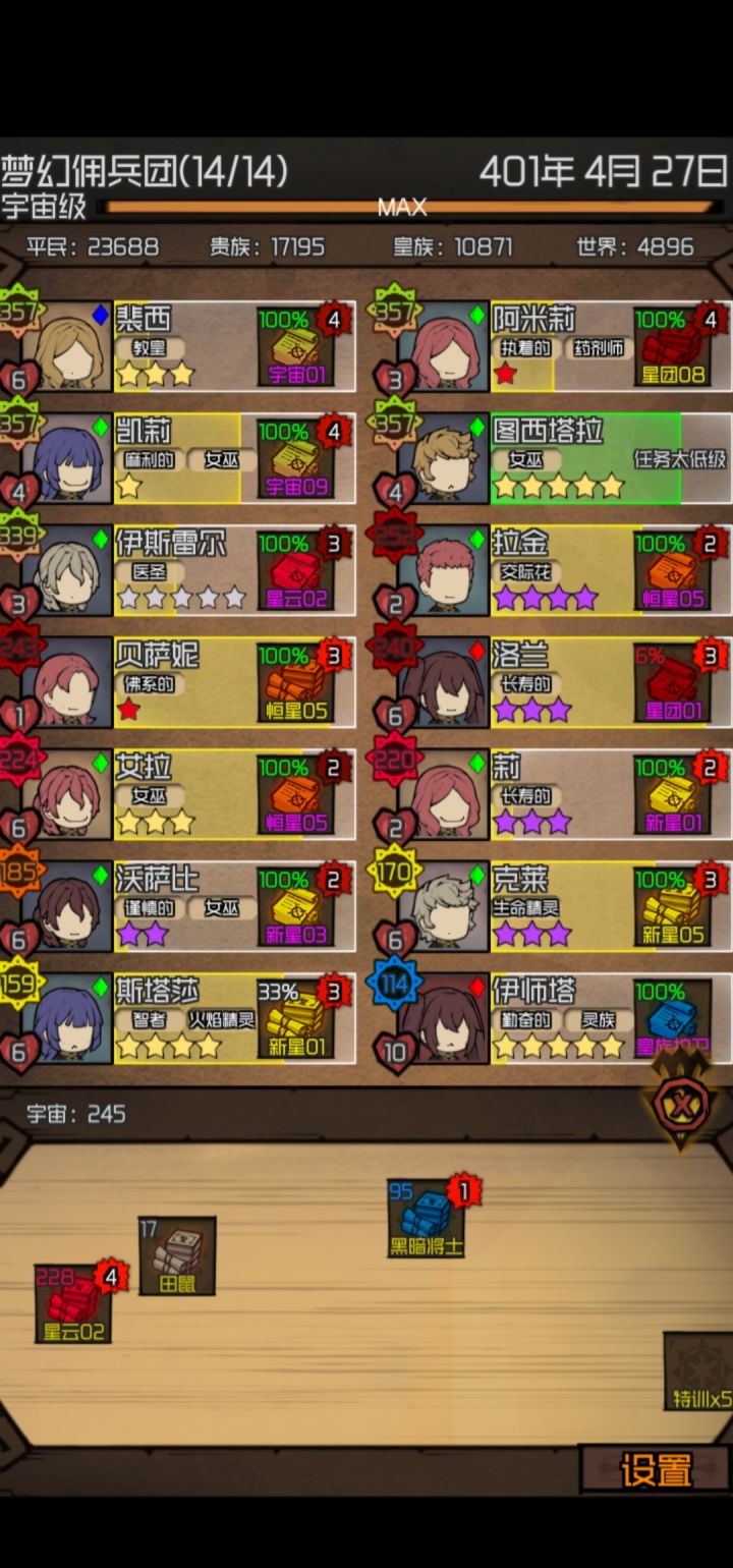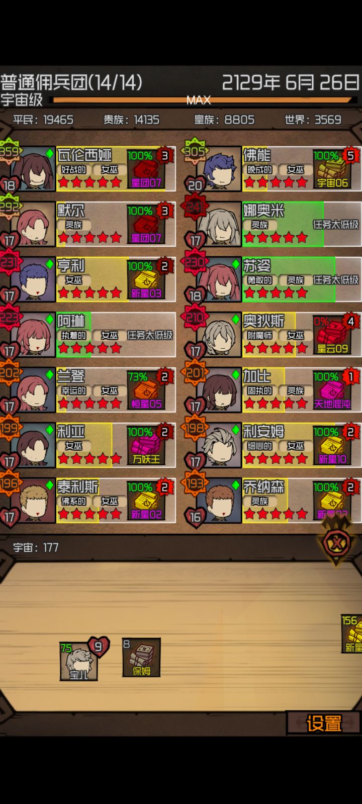 想刷满女巫的千万千万别第一局刷,太折磨了,机制原因吧,第一把等级上不去,肝的费劲,等级死活上不去300,任务最高等级也就299吧,过了三百级任务就不会失败了。没三百级还必须保护着医圣,不然任务一失败就是掉血,建议想刷十四女巫别刷太快,我之前普通女巫就一冰霜果实三百年还是五百不记得清楚了,五百多级靠皇族特训×3的还轻松上,现在一千多年了卡死二百多级就是上不去,后面女巫也特别难出,我三百多年时就六女巫了,一千多才10,感觉伯乐出女巫几率大,交际花多也难拉出女巫的感觉,😐这仅仅个人感觉,不作其他看法。