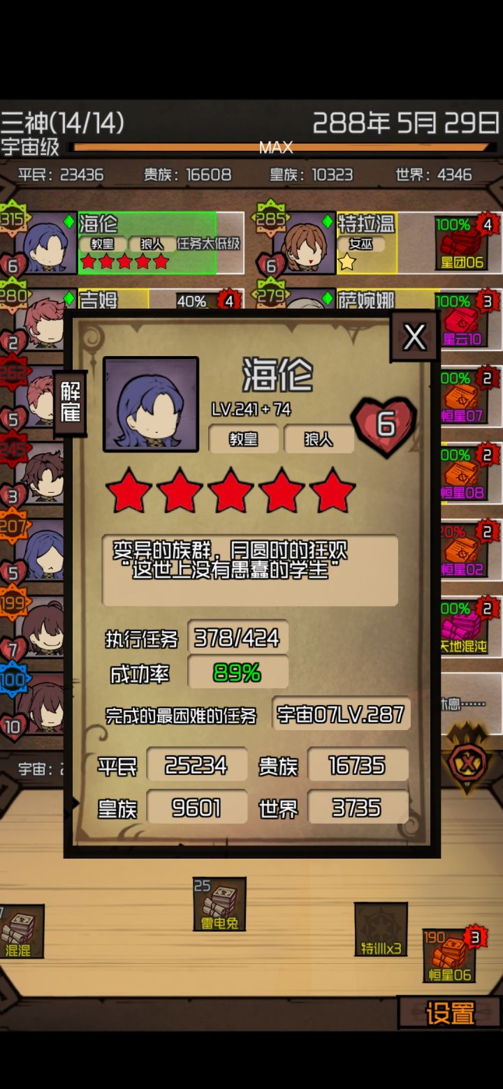 人物的职业讲完了就来讲性格 我个人推荐 拿好斗的 和勤奋的性格 特别是勤奋的 升级特别的快