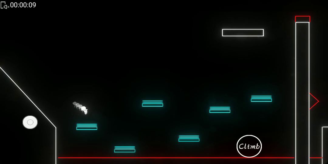 主要难度:1.两墙来回跳;2.二段跳把握高度;3.爬墙跳。总结就是一点:把握时机跳。多练几次,耐心最重要。其次感觉PC端的操作体验明显比手机端好,顺畅很多。建议作者优化一下手机端的操作,特别是方向控制顺滑度和死亡重生时间。PC端有时会出现跳键(自定义按键)不灵的情况。