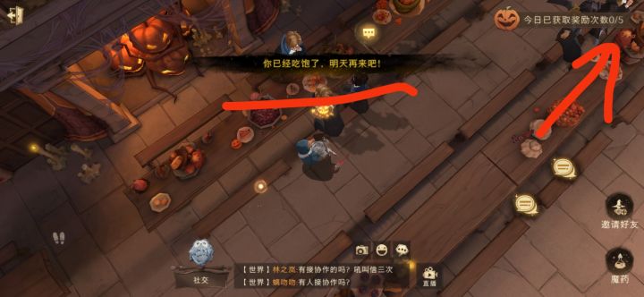 我用了两瓶隐身药水,愣是没有完成参与其他学院的晚宴,进去只有自己的那桌有图标。什么**游戏