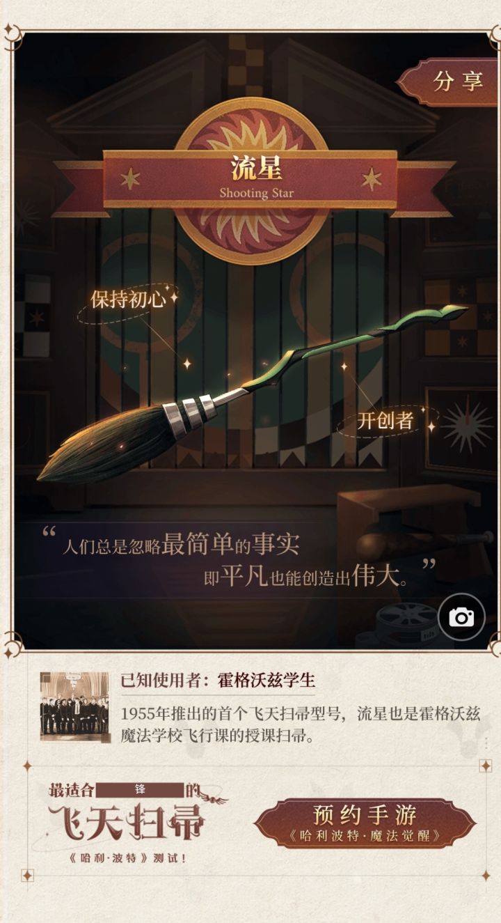 霍格沃兹从开办到现在,见证了入门的新生们第一次飞天冒险,即使看起来很平凡,但也培养了很多伟大的人物