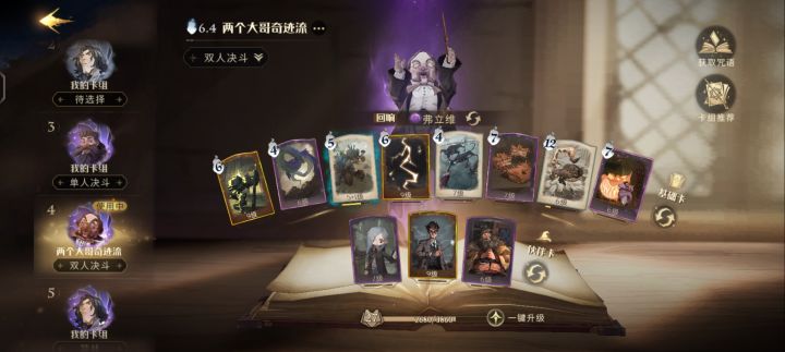 三号位带麦格的赫敏套,很吃操作,玩得好公平赛无敌(最高斩杀线在1400左右)这套可以打弗利维,我感觉赢面大,因为每次碰到弗利维都是我赢